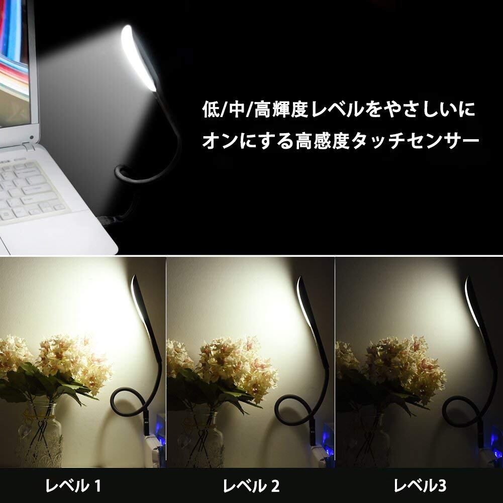 LEDGLE LEDランプ USBライト ミニUSBライト 角度調整可能 3段階調光可能 目に優しい 長寿命 PC/ノートパソコン/パワーバンク/USB充電用 ブラック