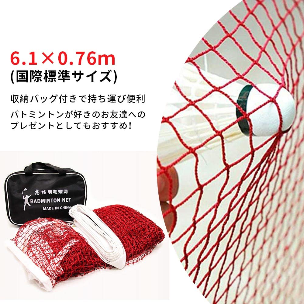 lanzoub バドミントン用ネット ゲージ 折りたたみ 6.1x0.76m 国際標準サイズ 練習用 家庭用 バドミントンメッシュネット ポータブル 組み立て簡単 収納バッグ付き 持ち運びしやすい 試合用可能 バドミントン/バレーボール/テニスネット用 正方形メッシュメッシュ 1.8cmx1.8cm(0.7x0.7インチ)