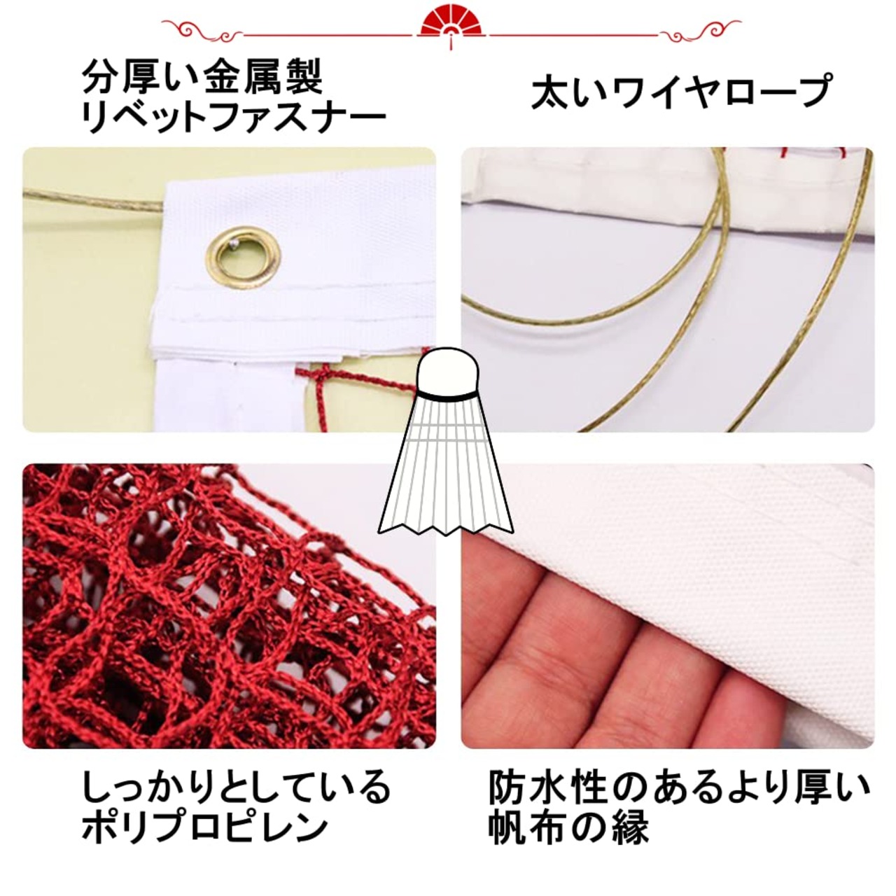 【高品質の素材】バドミントンネットはポリプロピレン繊維で作られ、耐久性と耐摩耗性に優れています。