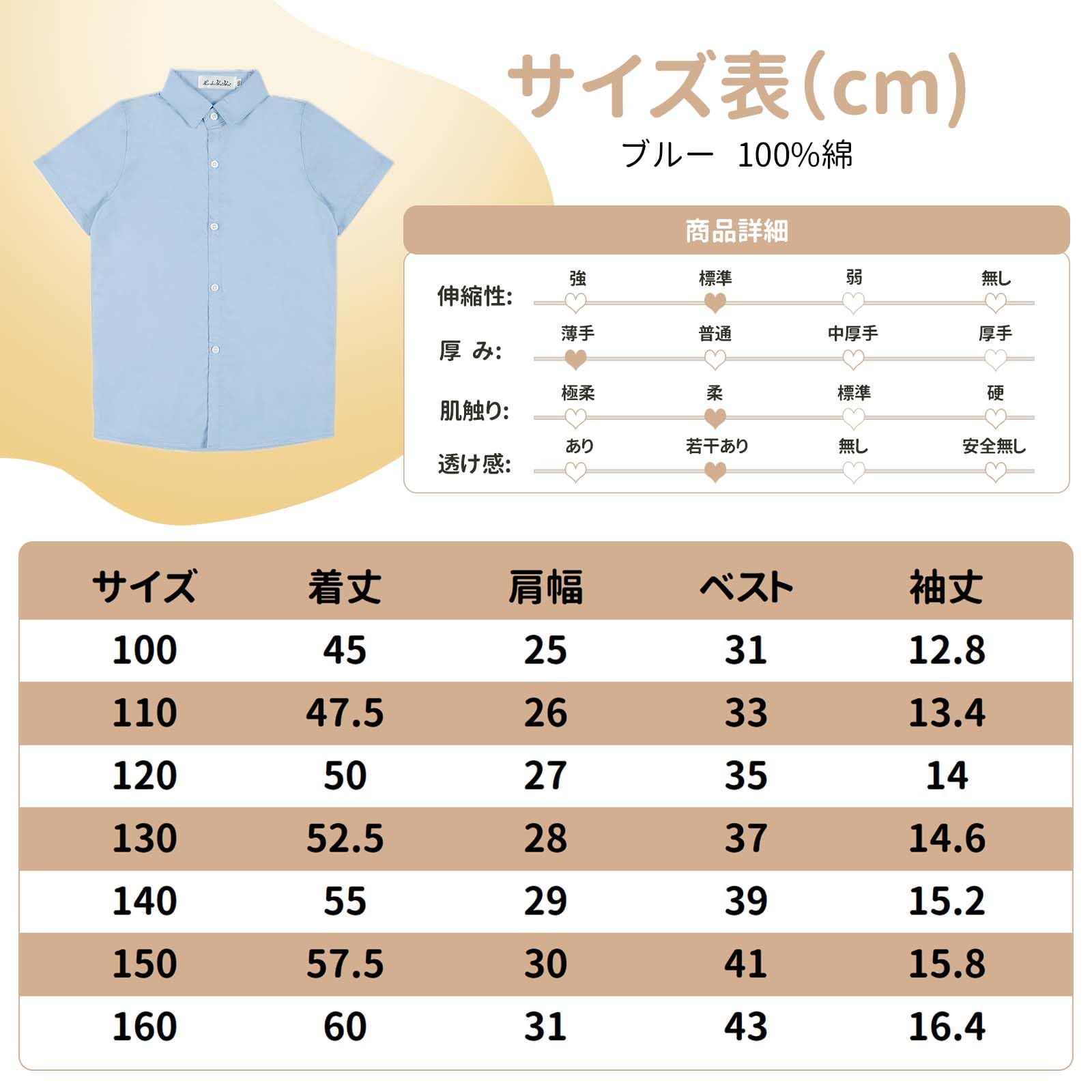 [LOLANTA] 子供 ワイシャツ 男の子 半袖 フォーマル 夏服 yシャツ スクールシャツ 無地 結婚式 発表会 90~160