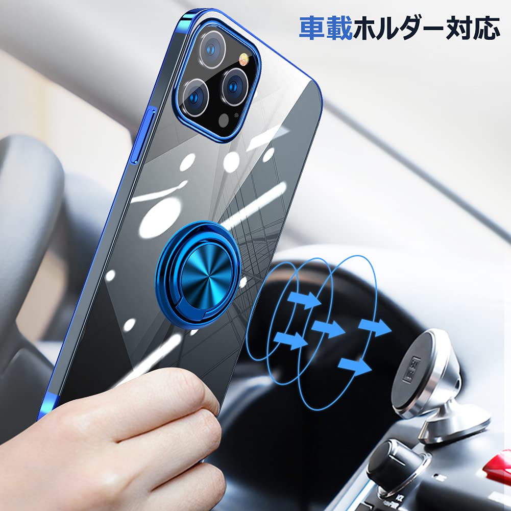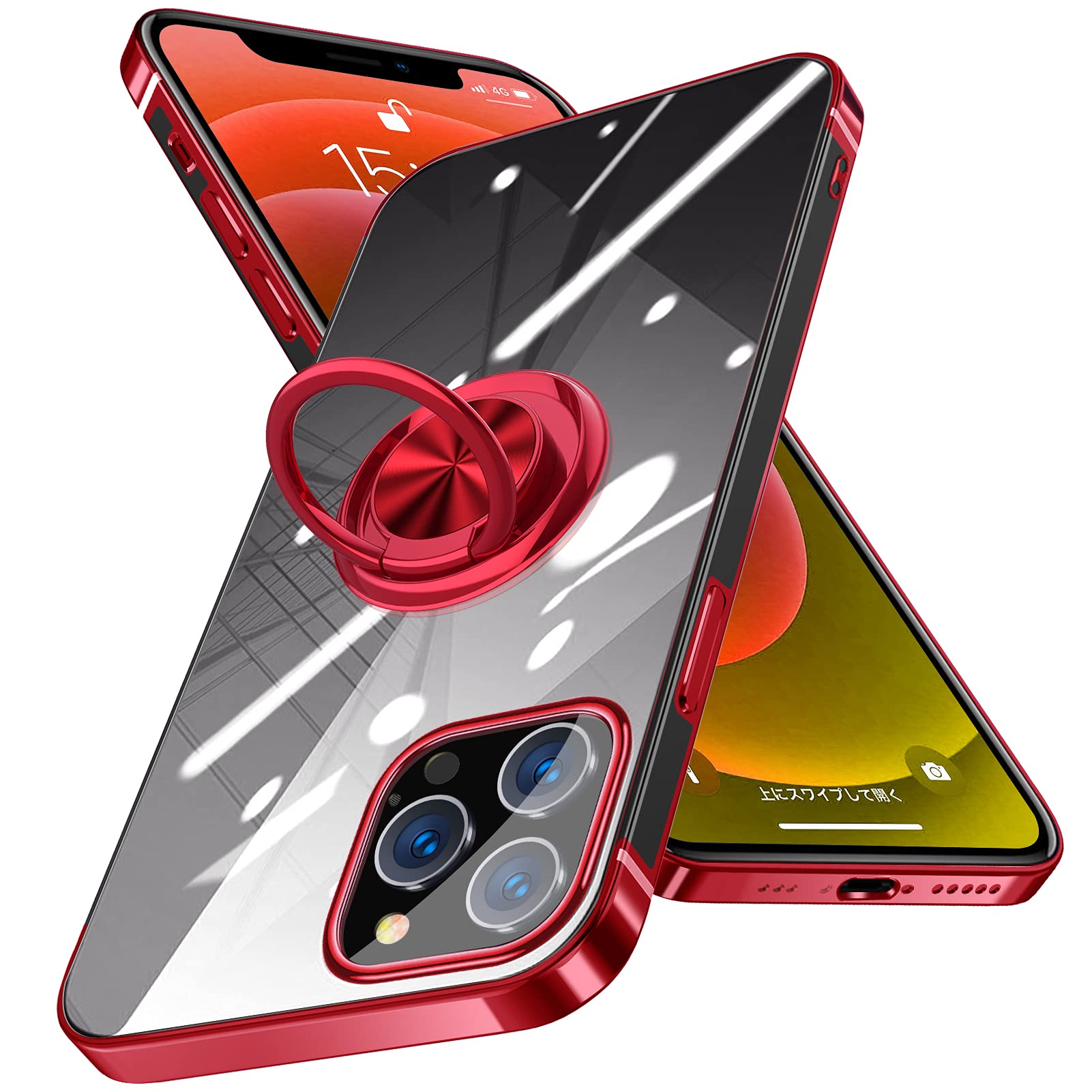 TMUJWS iPhone 12 ケース/iPhone 12 Pro ケース リング付き 透明 耐衝撃 TPUシリコン メッキ加工 全面保護 スタンド機能 軽量 黄変防止 車載ホルダー対応 イフォン12/12 Pro ケース 落下防止 ストラップホール付き 耐摩擦 すり傷防止 気泡防止 薄型 一体型 取り出し易い 一体型 携帯カバー 赤 MZ53-15