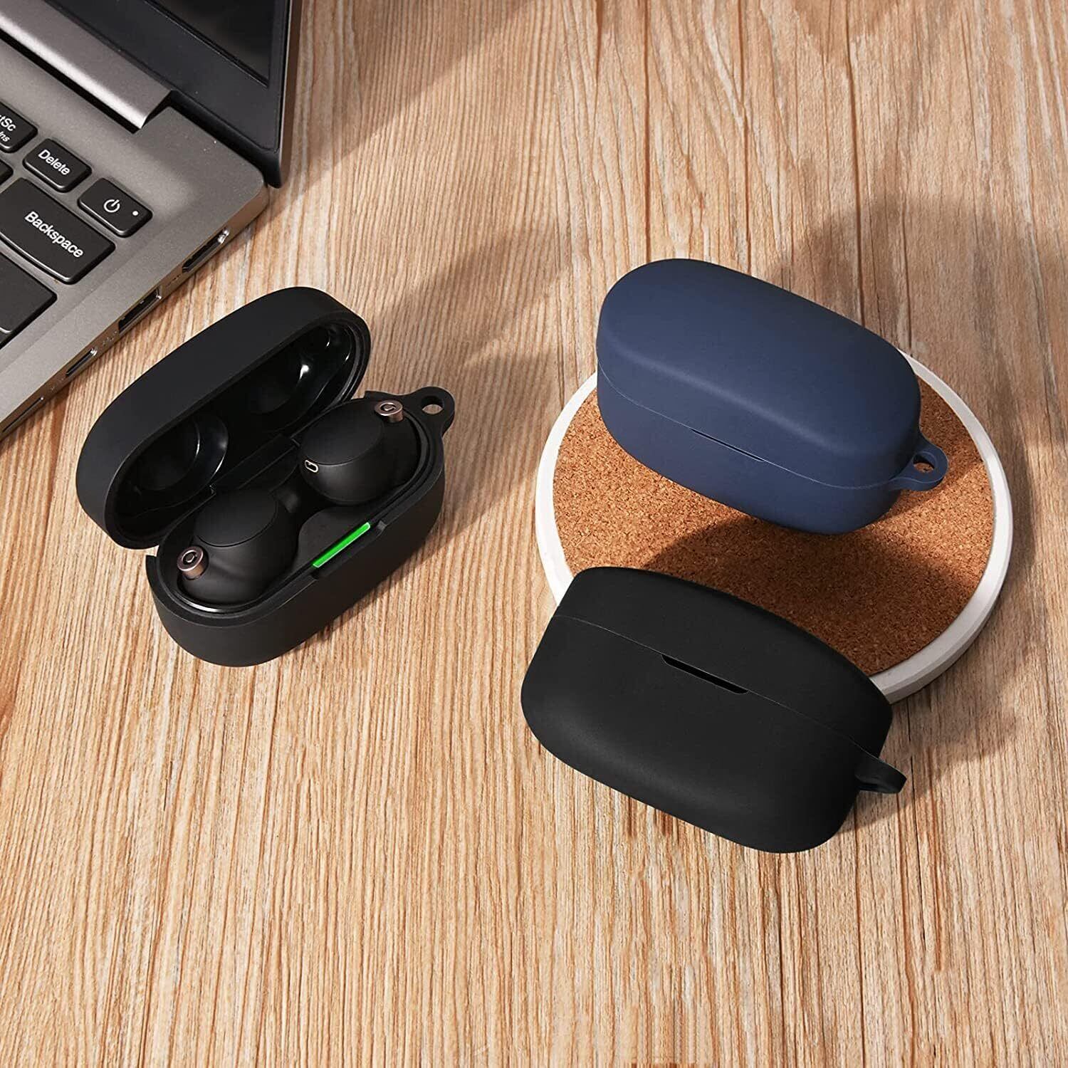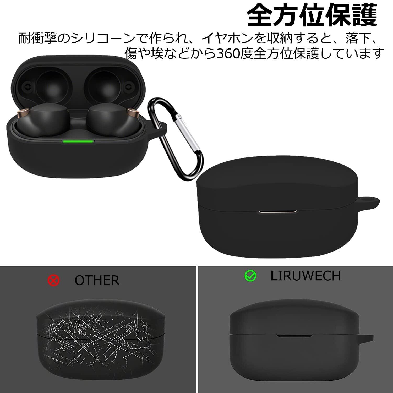LIRUWECH for Sony WF-1000XM4用ケース ソニー ワイヤレス イヤーホン 用 シリコンケース 全面保護カバー WF-1000XM4用アクセサリー 落下防止 キズ防止 耐衝撃 装着充電可能 防水 防塵 カラビナ付き(Sony WF-1000XM4,ブラック)