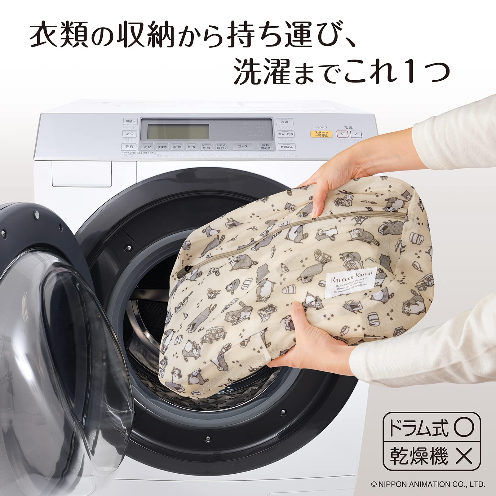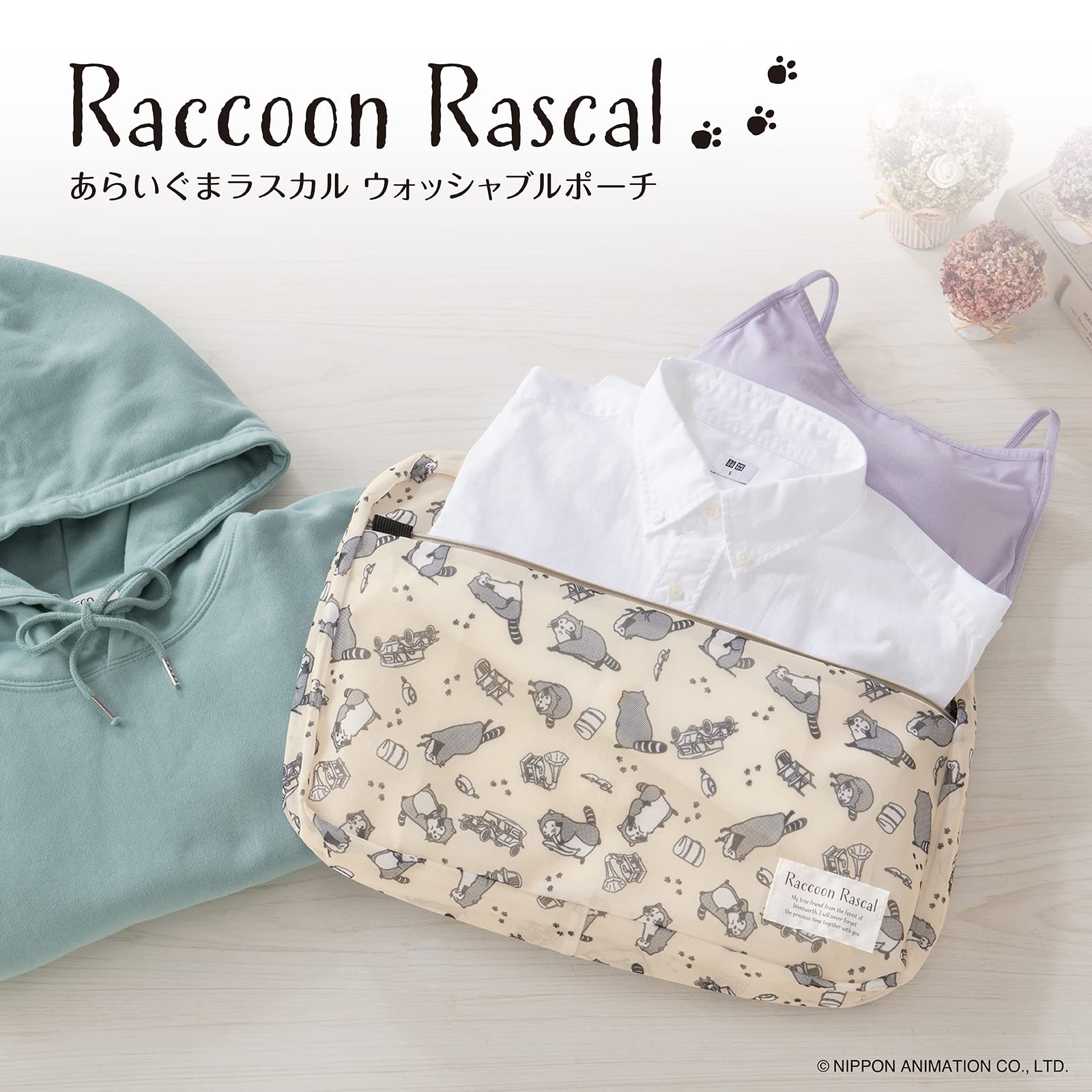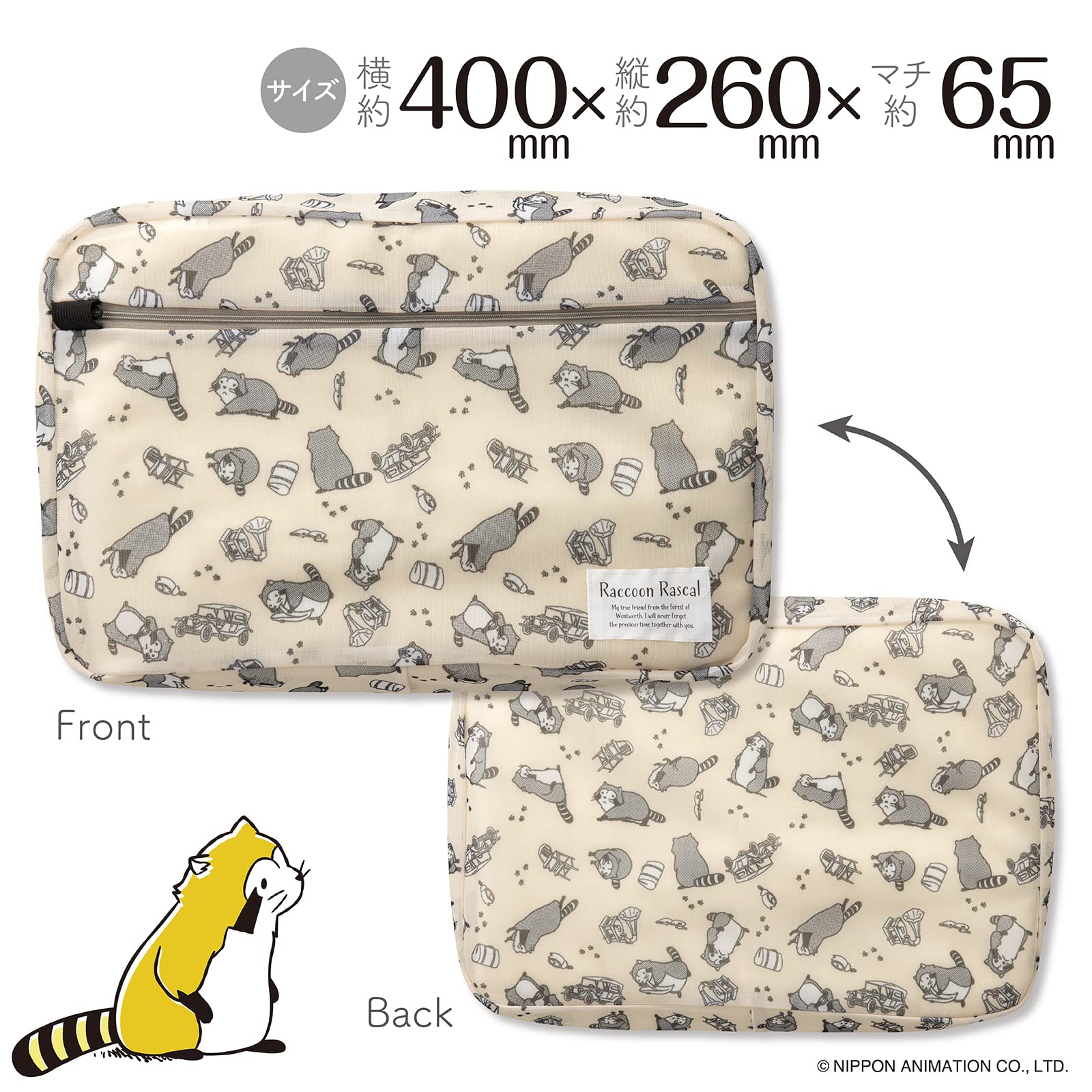 ダイヤ (Daiya) トラベルポーチ 洗濯ネット あらいぐまラスカル ウォッシャブルポーチ 横40㎝×縦26㎝×厚み6.5㎝ まるごと洗える 着替え袋 旅行 ランドリーネット ランドリーバッグ かわいい 057968