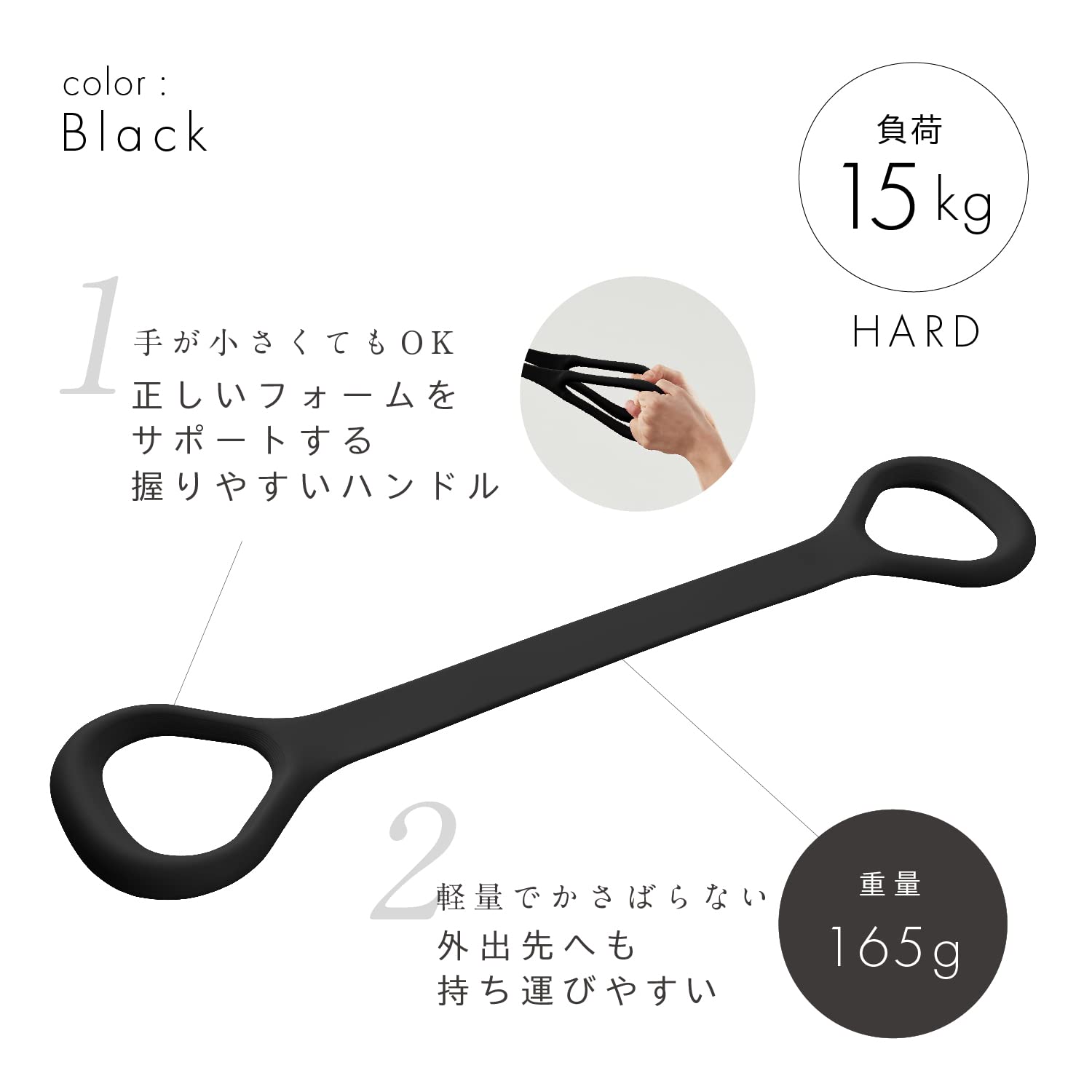 【商品仕様】本体サイズ:W100×L500×H20㎜/重量:約165g/伸長制限:約1500mm/材質:シリコーン/負荷:約15㎏/カラー:ブラック