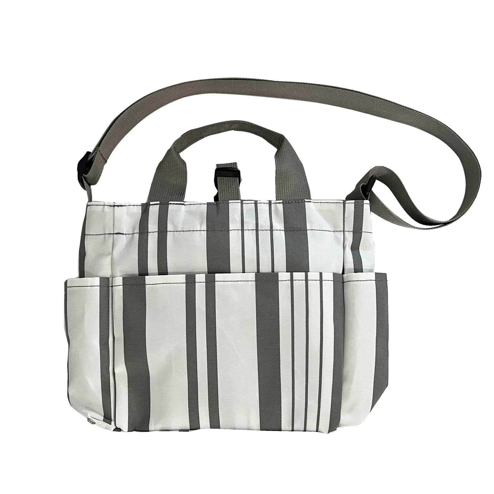 【サイズ】ヨコ上辺 約 25cm、ヨコ下辺 約 27cm、高さ 約 21.5cm、マチ 約 8cm、持ち手長さ 25cm、ショルダー最長 120cm