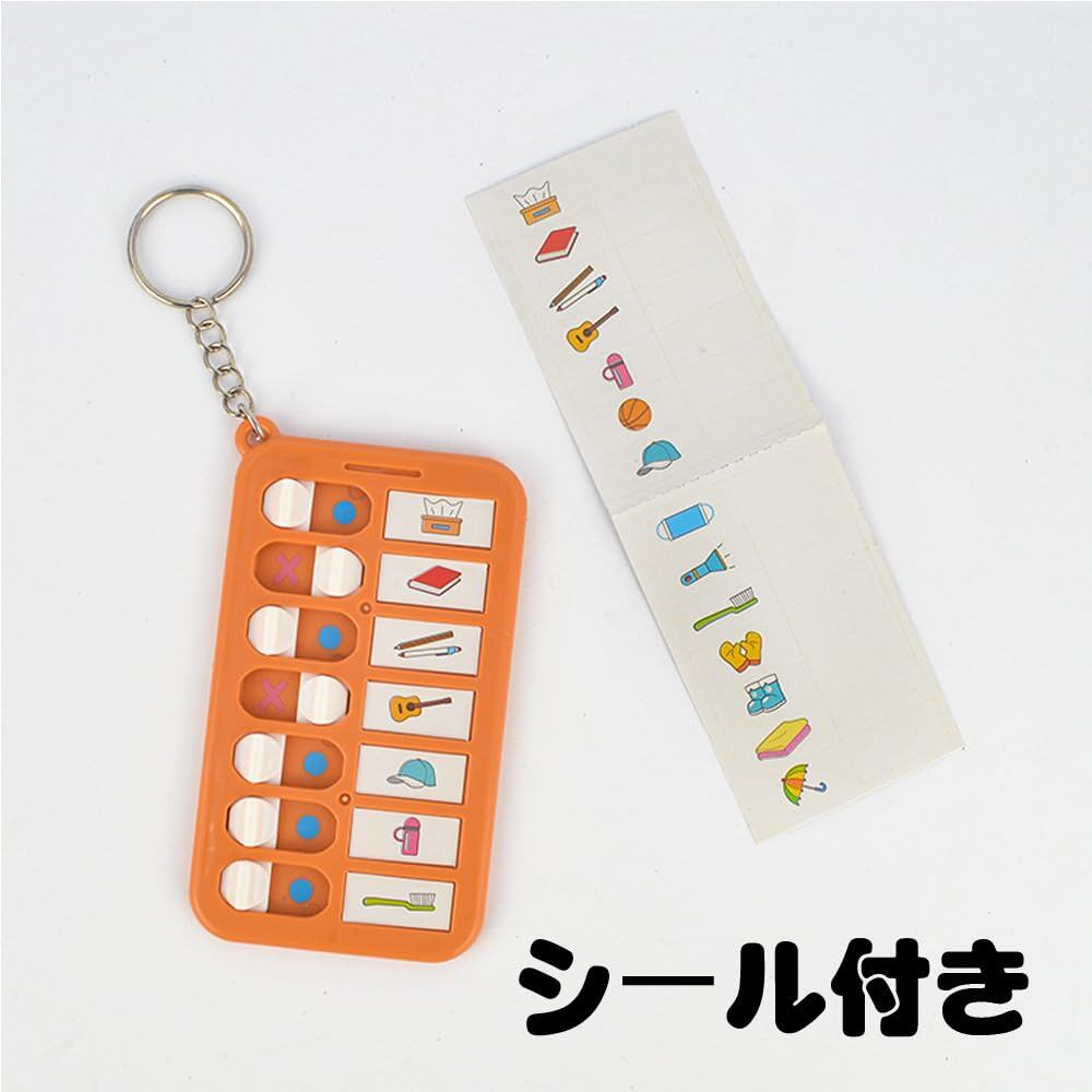 【使いやすさ】step.1:提供されたイラストと通常のステッカーでキーチェーンに入れるアイテムややるべきことを作成し、ステッカーをキーチェーンに入れます。step.2:出かける前に、ロストアイテムチェッカーを確認し、×から○へスライドさせます。全てが○になったら出発できます! ※スライドを〇から×に再度変更すれば、再利用可能です。