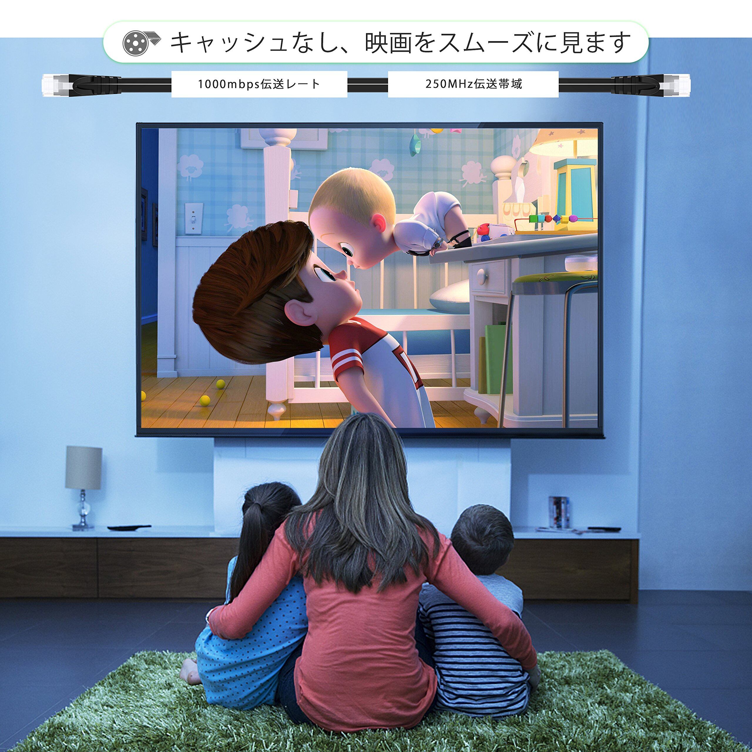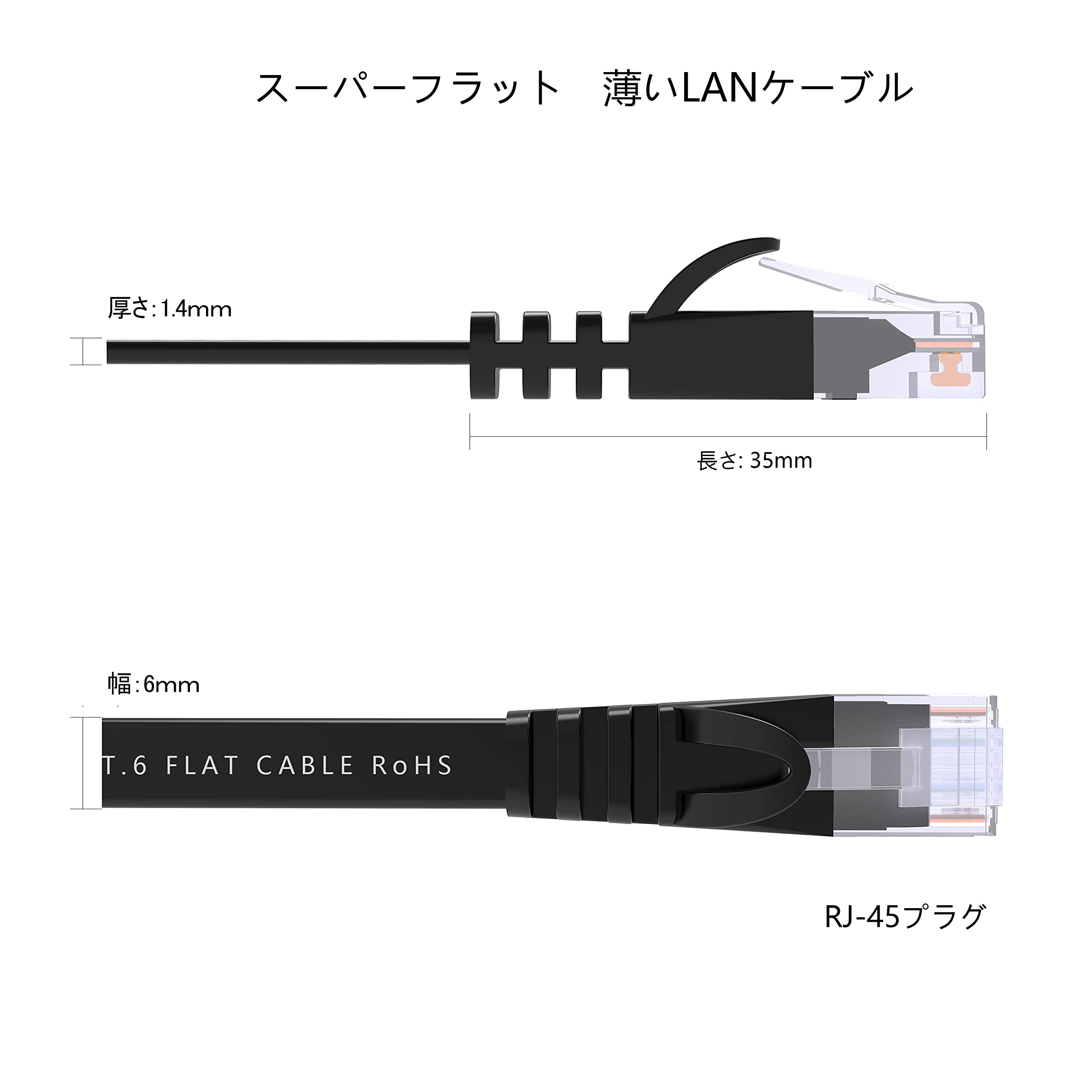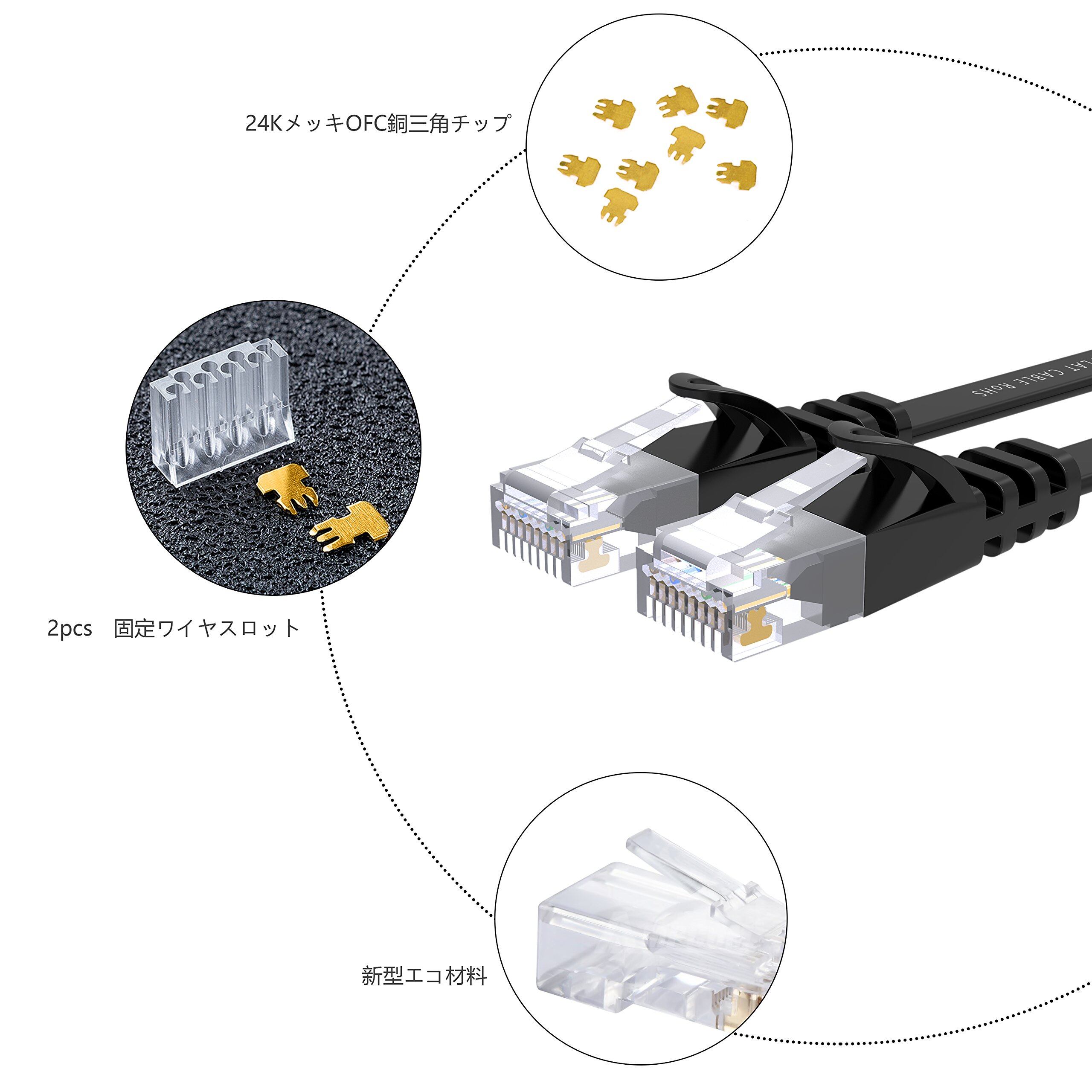 【新着商品】LANケーブル イーサネットケーブル CAT6準拠 ウルトラフラットケーブル RJ45コネクタ ギガビット 爪折れ防止 やわらか 30m ブラック アクセスポイント等に適用います