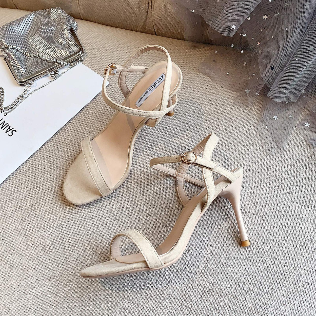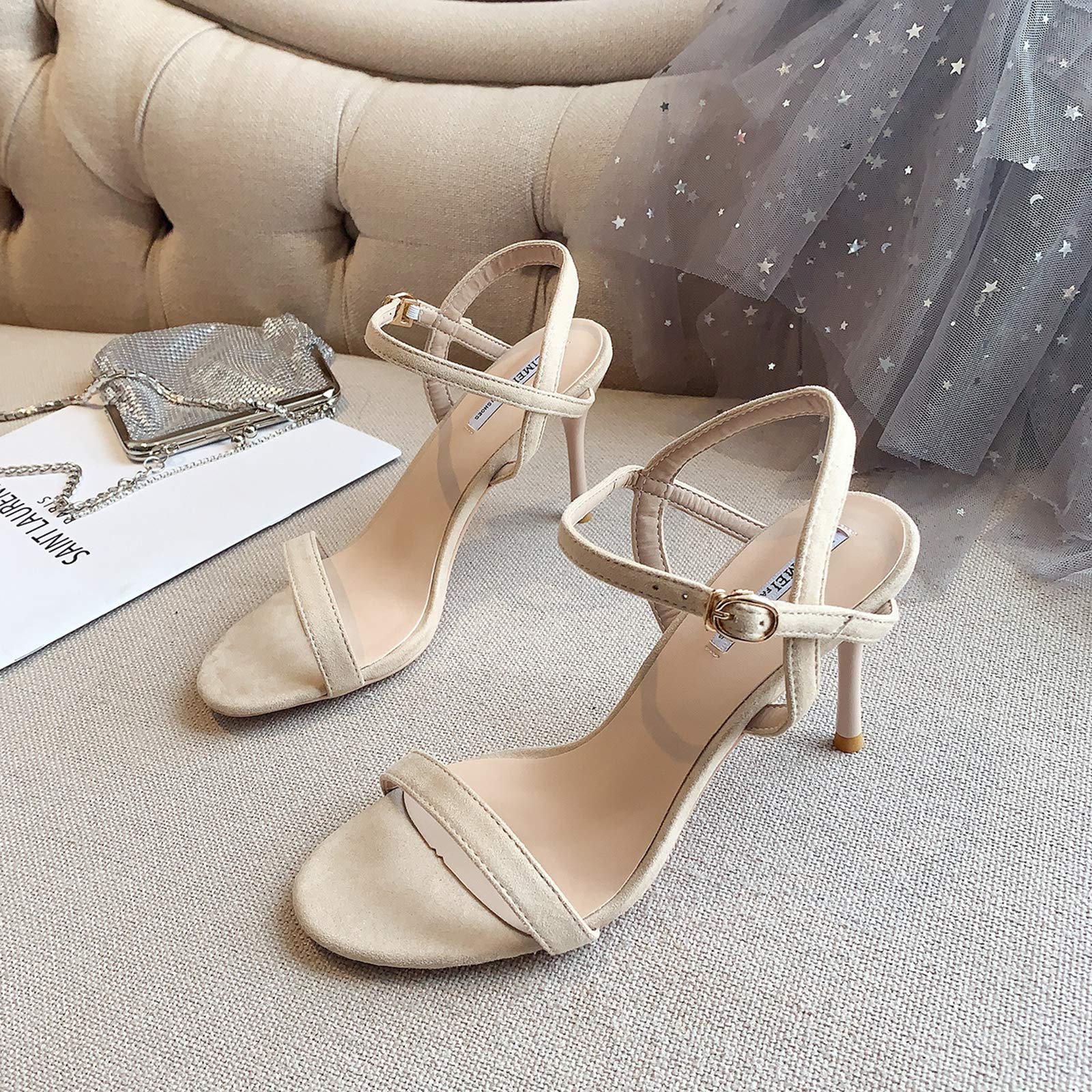 [ZUYEE] レディース サンダル ハイヒール アンクルストラップ ピンヒール 美脚 シンプル