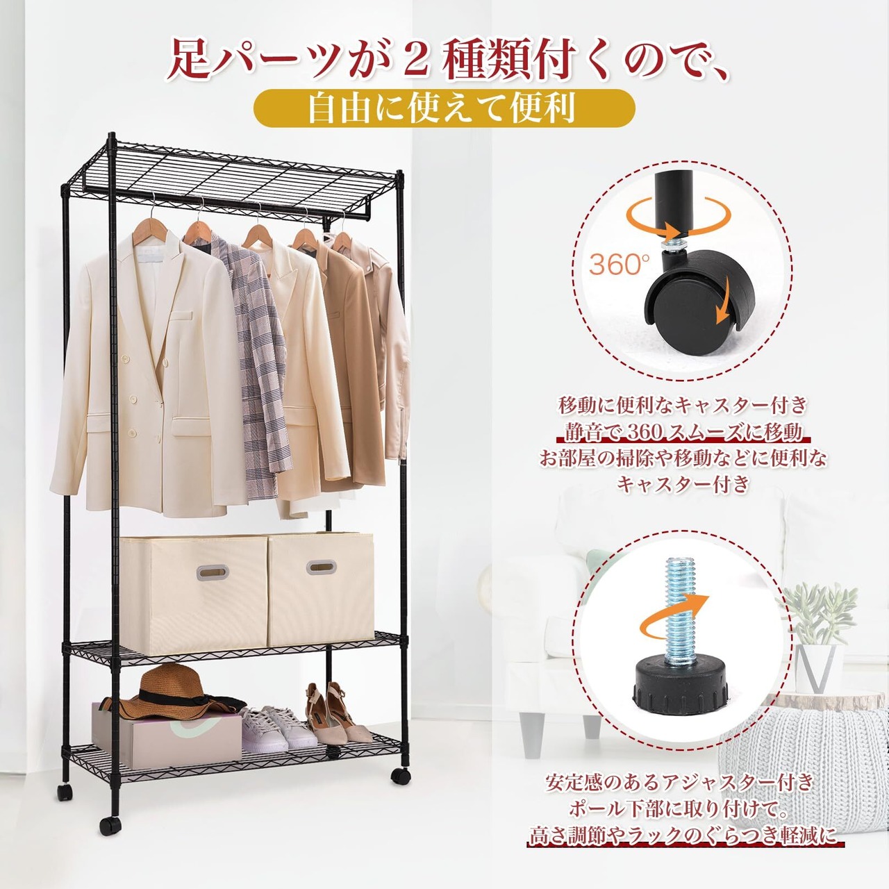 【人気商品】AZAKBL ハンガーラック幅92×奥行46×高さ173cm ワードローブ クローゼット カバー付き キャスター付 スチールラック メタル スリム 省スペース おしゃれ 頑丈 ハンガーかけ コートハンガー 洋服収納 (ブラック) | nico3588