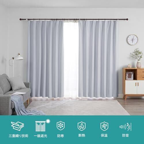◆【三重織り技術】生地は三重構造のテクノロジーの技術利用して黒い系を織り込んでいるから、優れた遮光機能が備えております。きちんと室外からの日差しや紫外線などをしっかり遮られる機能付きの厚地遮光カーテンです。