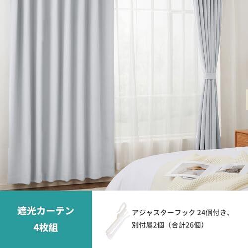 Hansleep カーテン 1級遮光 4枚セット 幅100cm丈200cm アイスグレー 断熱 防寒 防音 省エネ 厚手 無地 おしゃれ 洗える リビング用 (カーテン2枚・レース2枚)