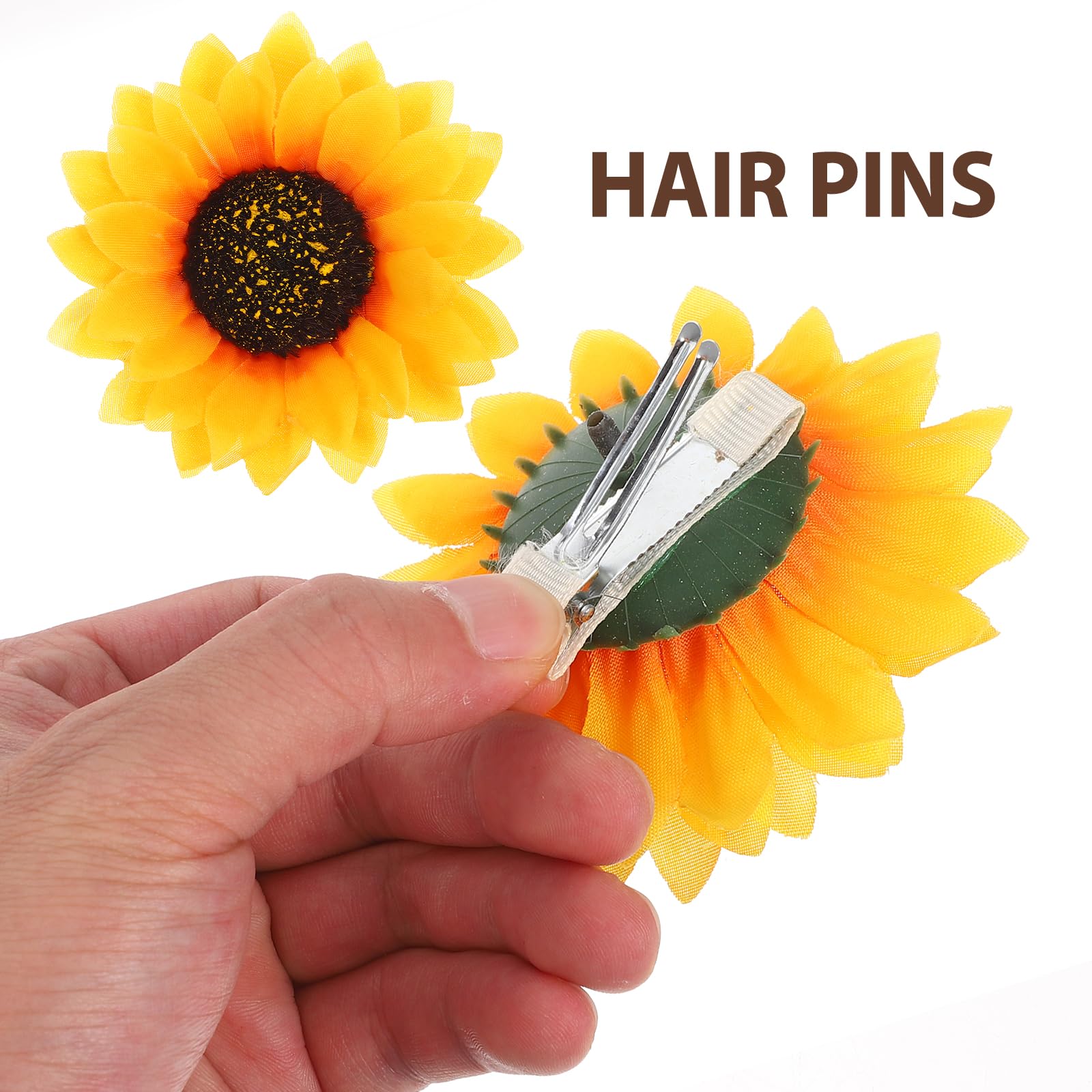 FOMIYES 黄色 ひまわり ヘア ヘアピン、 ひまわり デザイン ヘアピン、 アヒル クリップ 消耗品 女の子用 6個