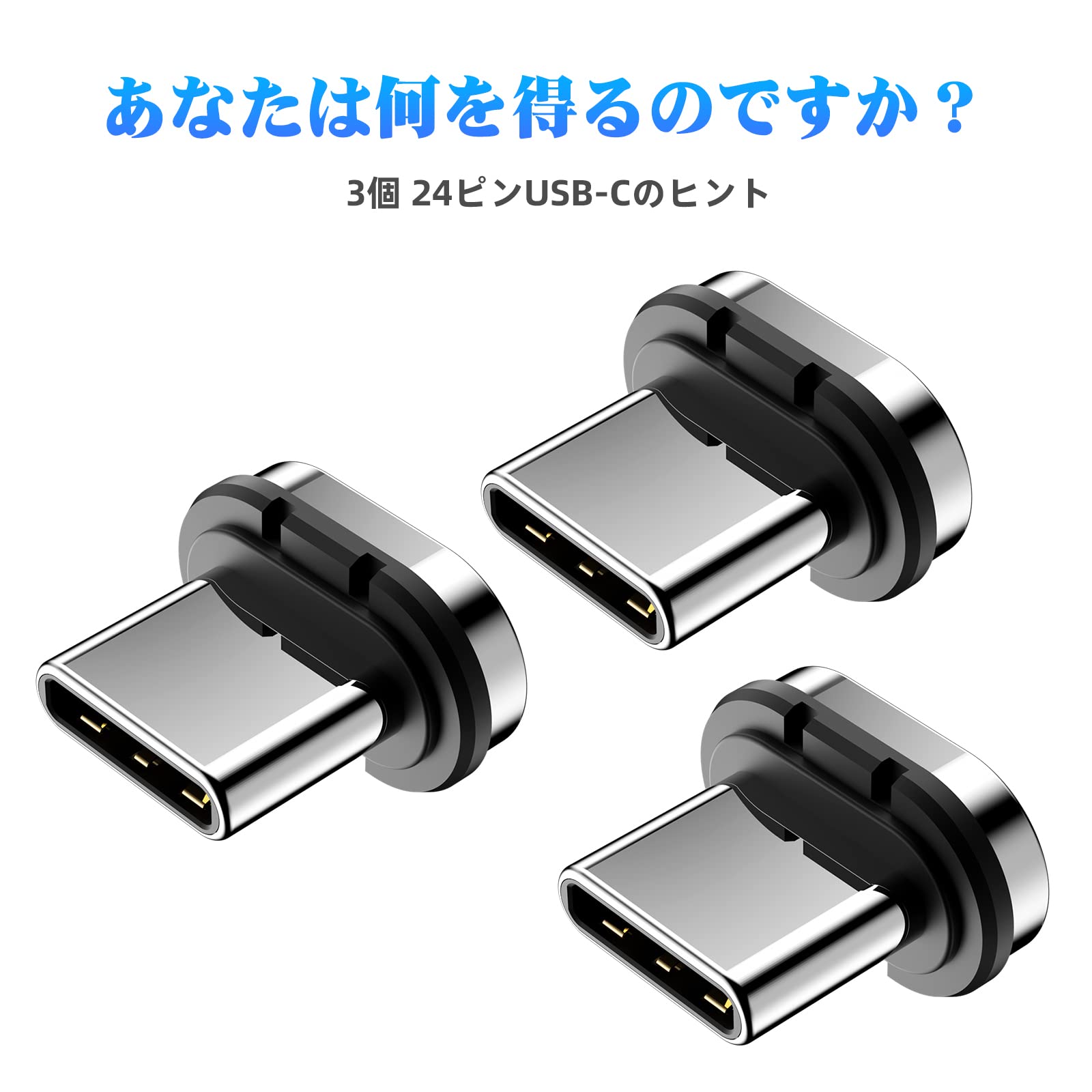 3個パック - 24ピン磁気USB Cコネクタチップヘッド、電話タブレットケーブルアダプター用。
