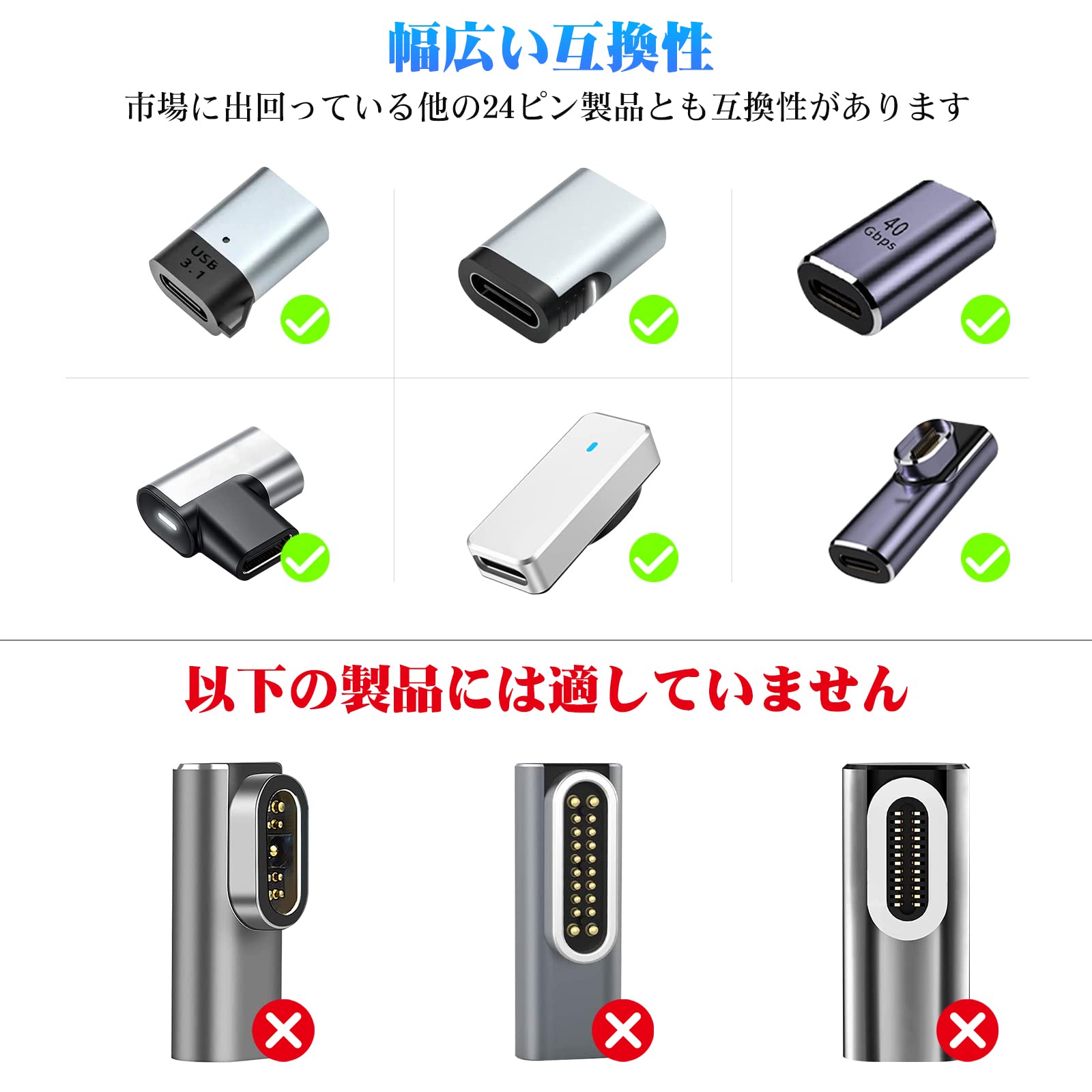 24ピンの磁気アダプターまたはケーブルにのみ互換性があります。