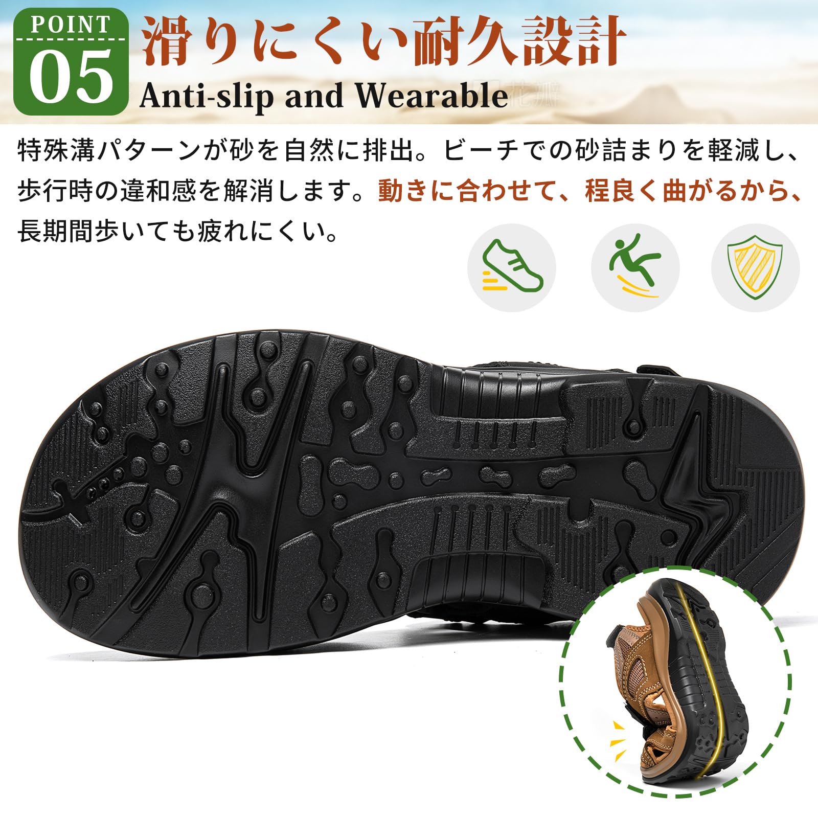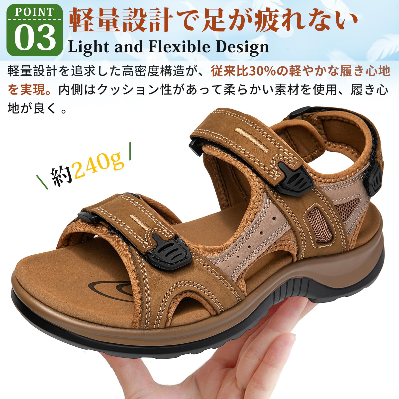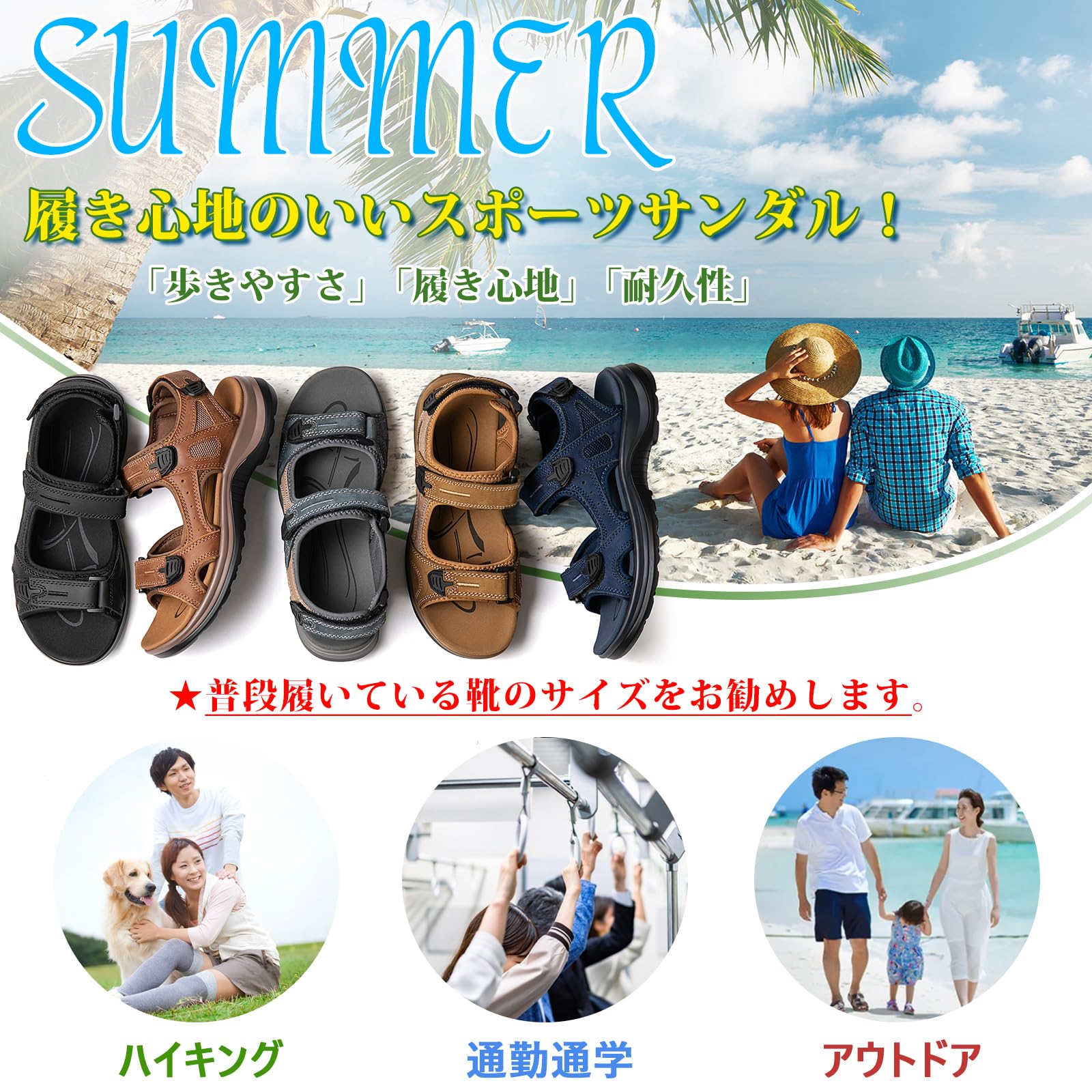 [SOARHOPE] サンダル さんだる メンズ レディース スポーツさんだる 本革 ウォーキングサンダル 夏 通気 軽量 歩きやすい