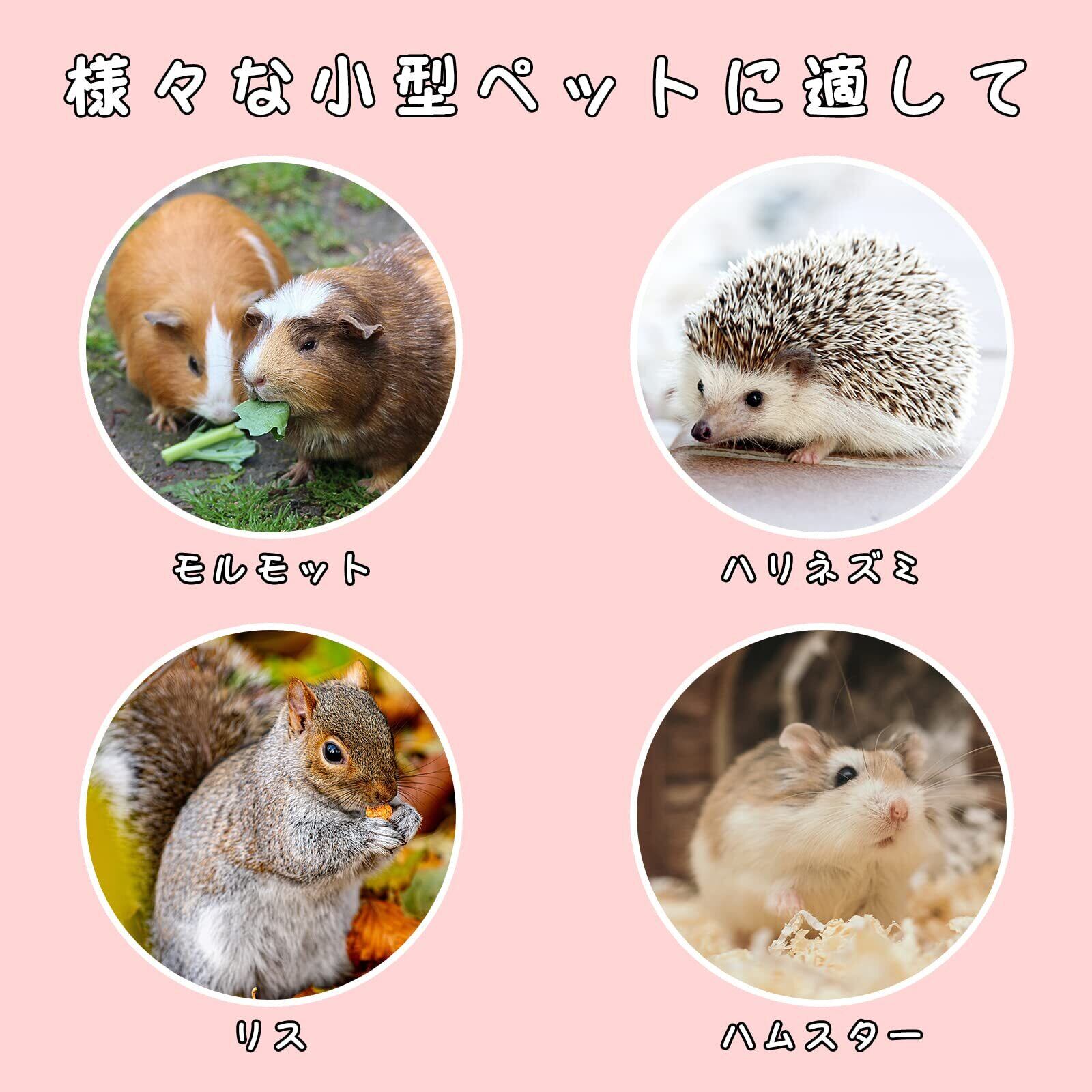 【動物に適して】トトロ、ハムスター、マウス、ウサギ、ラット、子犬、チンチラ、スナネズミ、モルモット、犬、オランダのブタ、猫など。