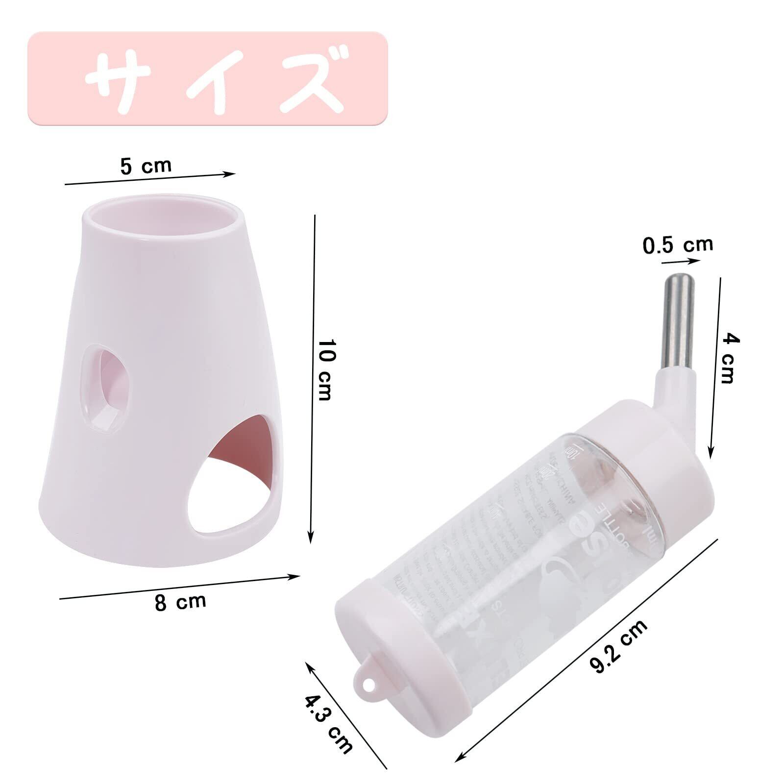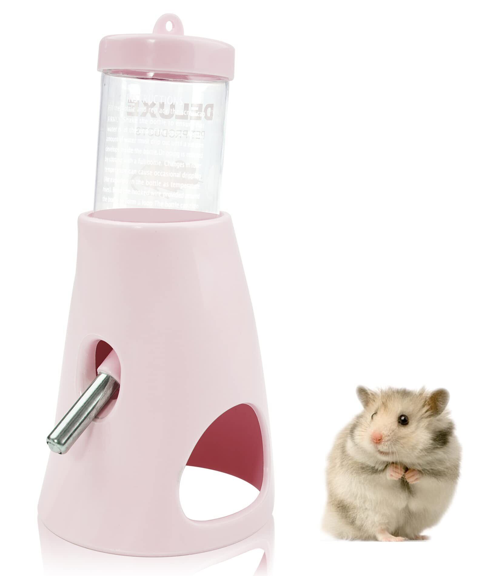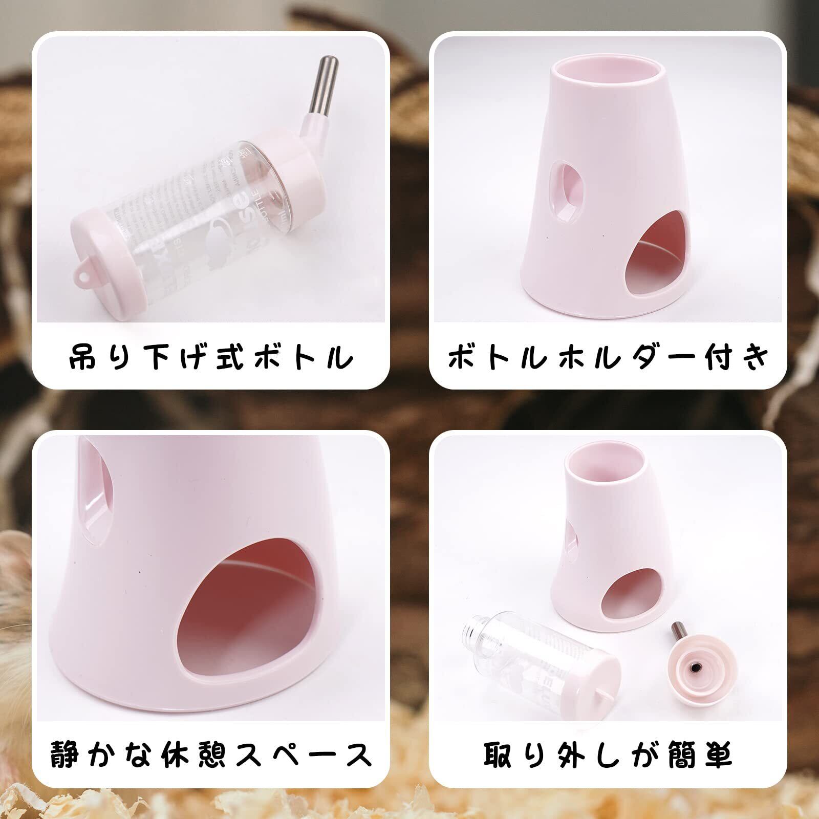 ハリネズミ ハムスター リス 水飲み器 自動給水器 ウォーターボトル ボトル ホルダー付き 水漏れ防止 便利 取り付け簡単 多機能 小動物 飼育ケージ内装 小動物の隠れ家 (ピンク)