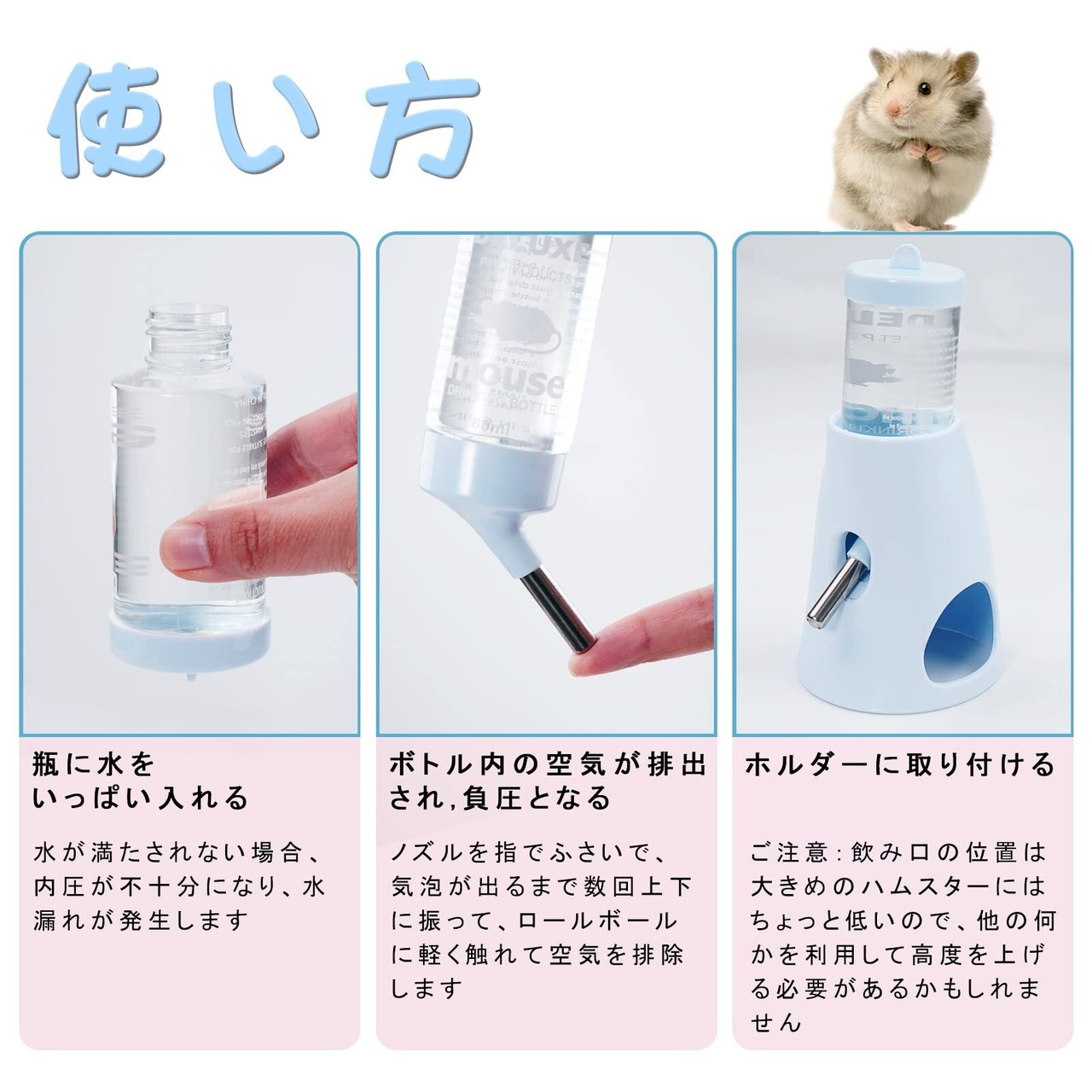 【多機能】このハムスターウォーターボトルは、ウォーターボトルだけでなく、このウォーターボトルの底には、ペットを収容できる小屋があり、 隠された楽しみを楽しむために。