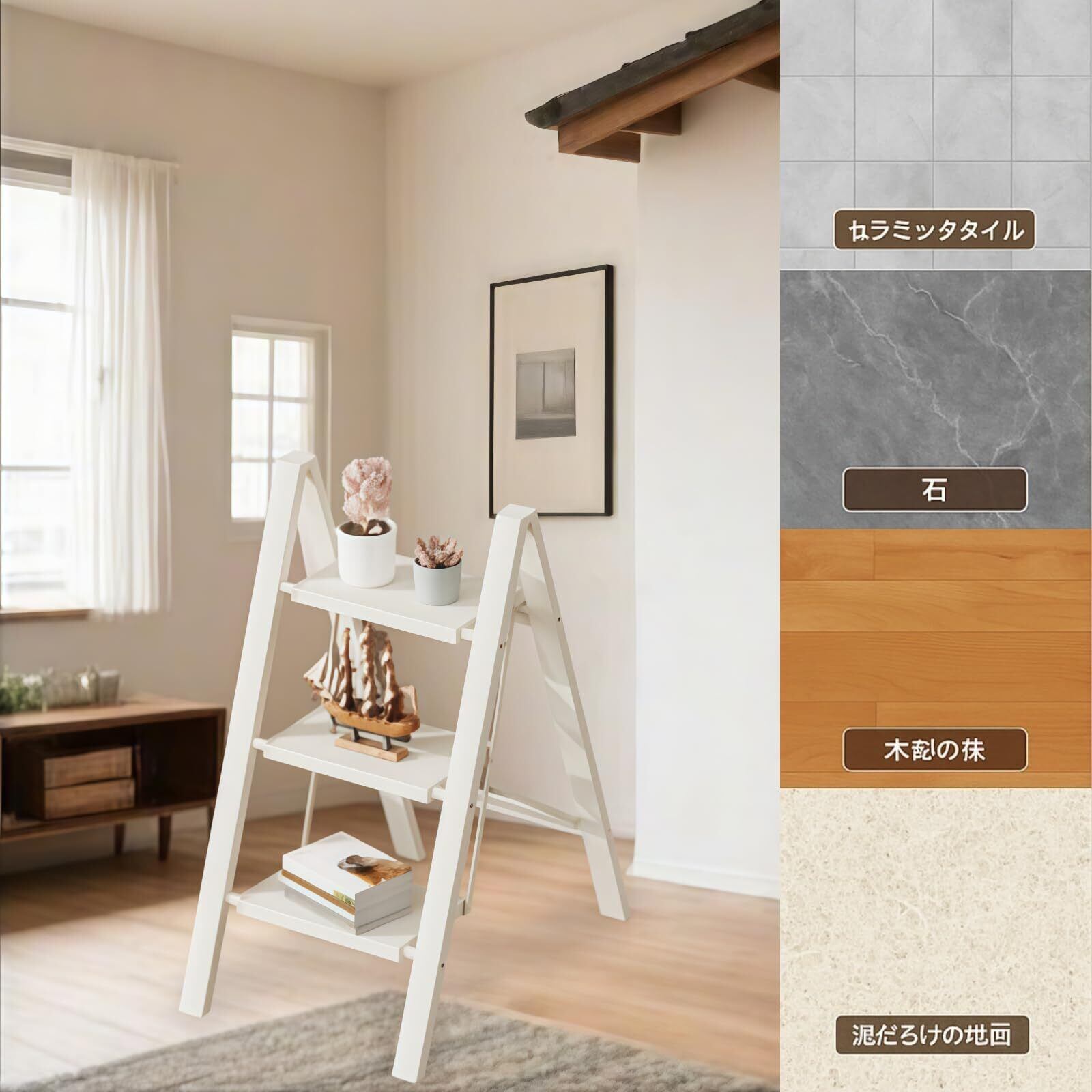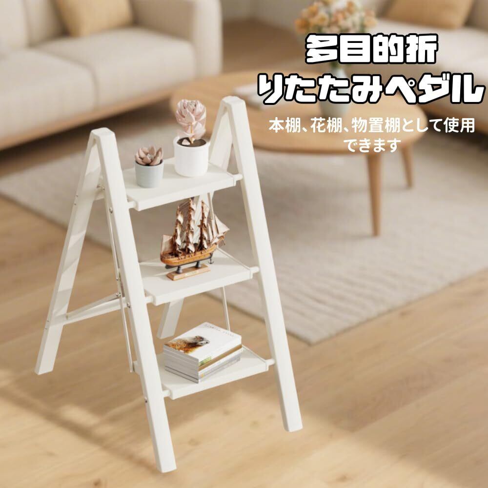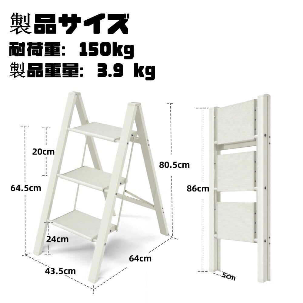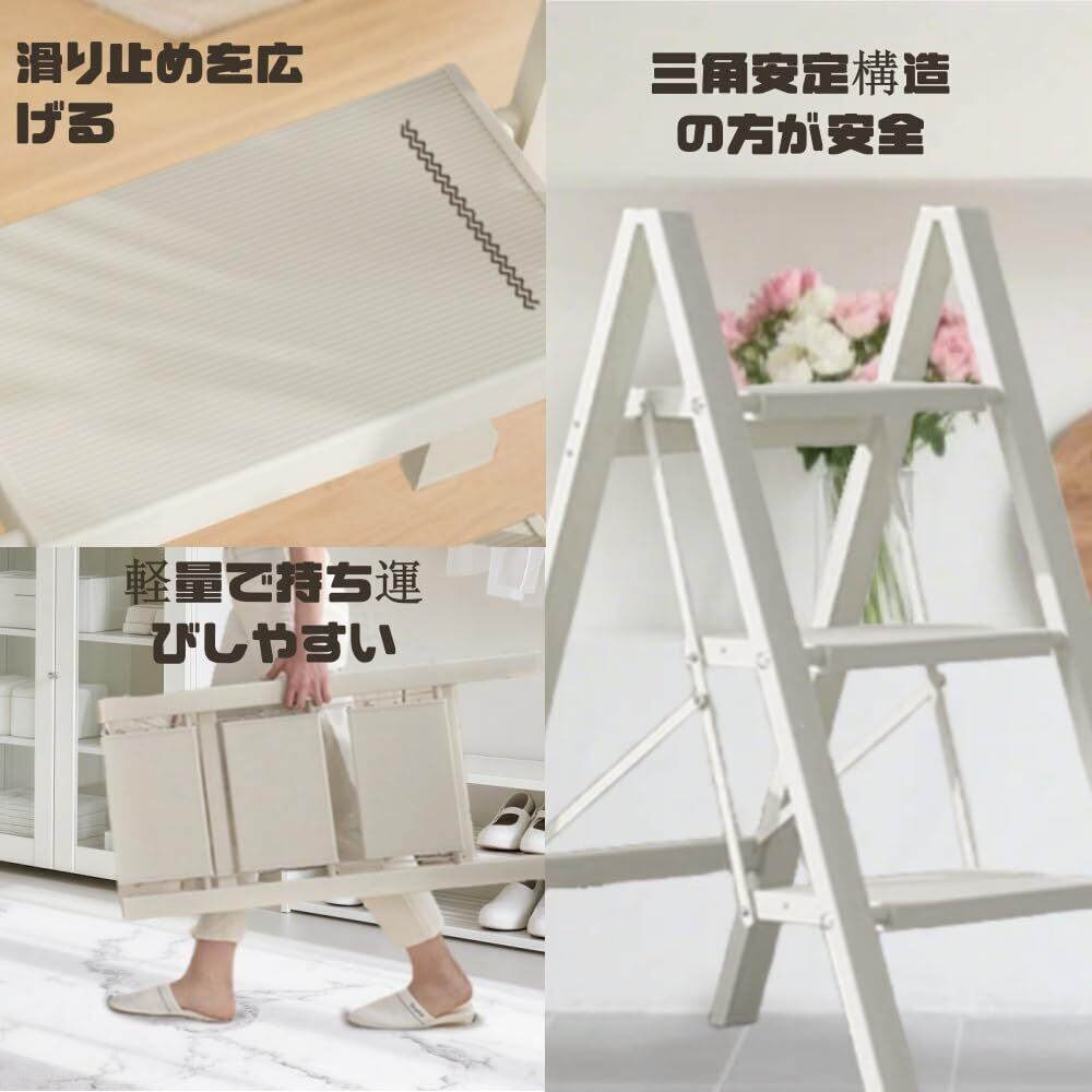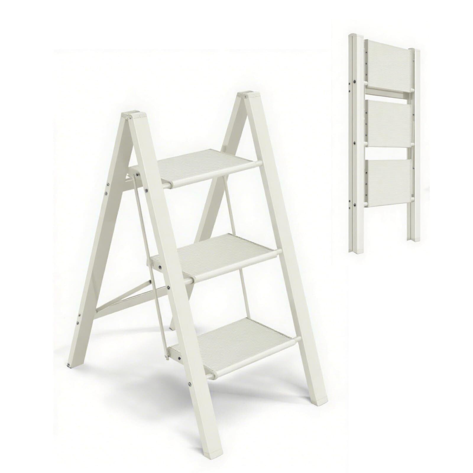 MERDIVEN 3段 アイボリーホワイト 折りたたみ アルミ製 脚立 超軽量3.6kg 耐荷重150kg 幅広ステップ 滑り止め加工 室内外兼用 コンパクト収納 デザイン性 踏み台 フラワースタンド インテリアにも映える