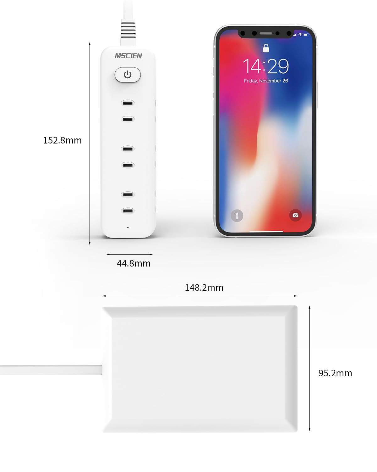 「干渉しない・一括スイッチ」:AC差込口間の距離が適切で、レイアウトが合理的なので、多くのACアダプタが同時に挿入でき、干渉することなくすっきりとしています。また、電力を節約できる一括集中スイッチが付いています。