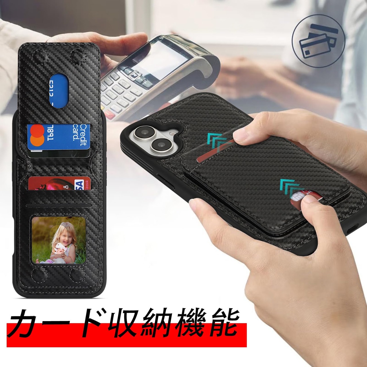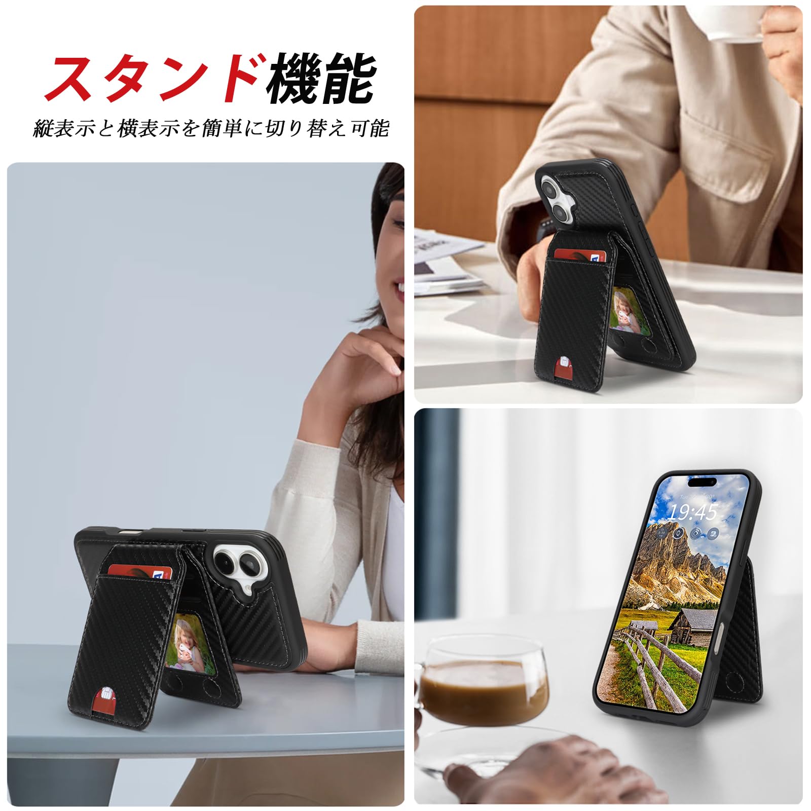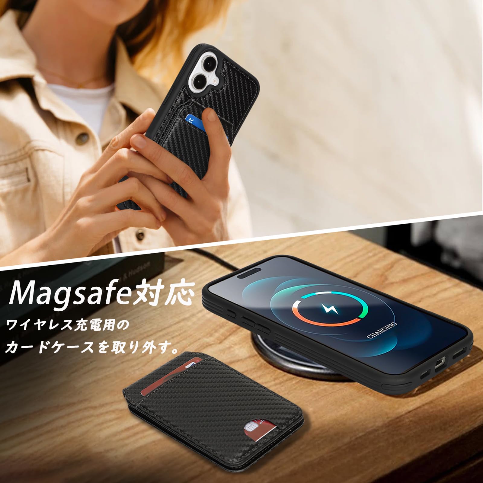 【2022最新】Havaya iPhone 16 ケース MagSafe 対応 あいふおん16ケース マグセーフ カーボン 米軍MIL規格 背面 カード収納 耐衝撃 財布 汗や指紋防止 ハニカム構造 放熱 分離式 ワイヤレス充電対応 高級な炭素繊維風 (6.1インチ対応)-ブラック 炭素繊維