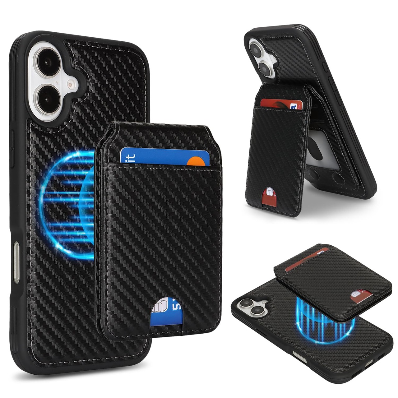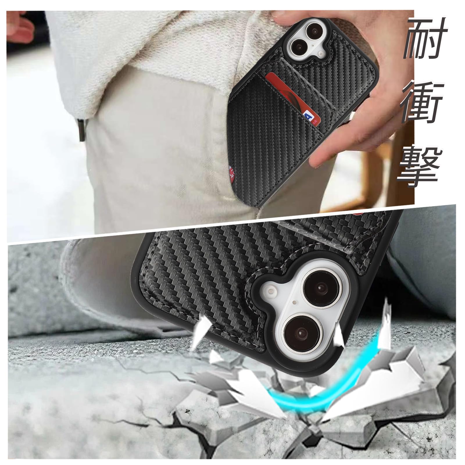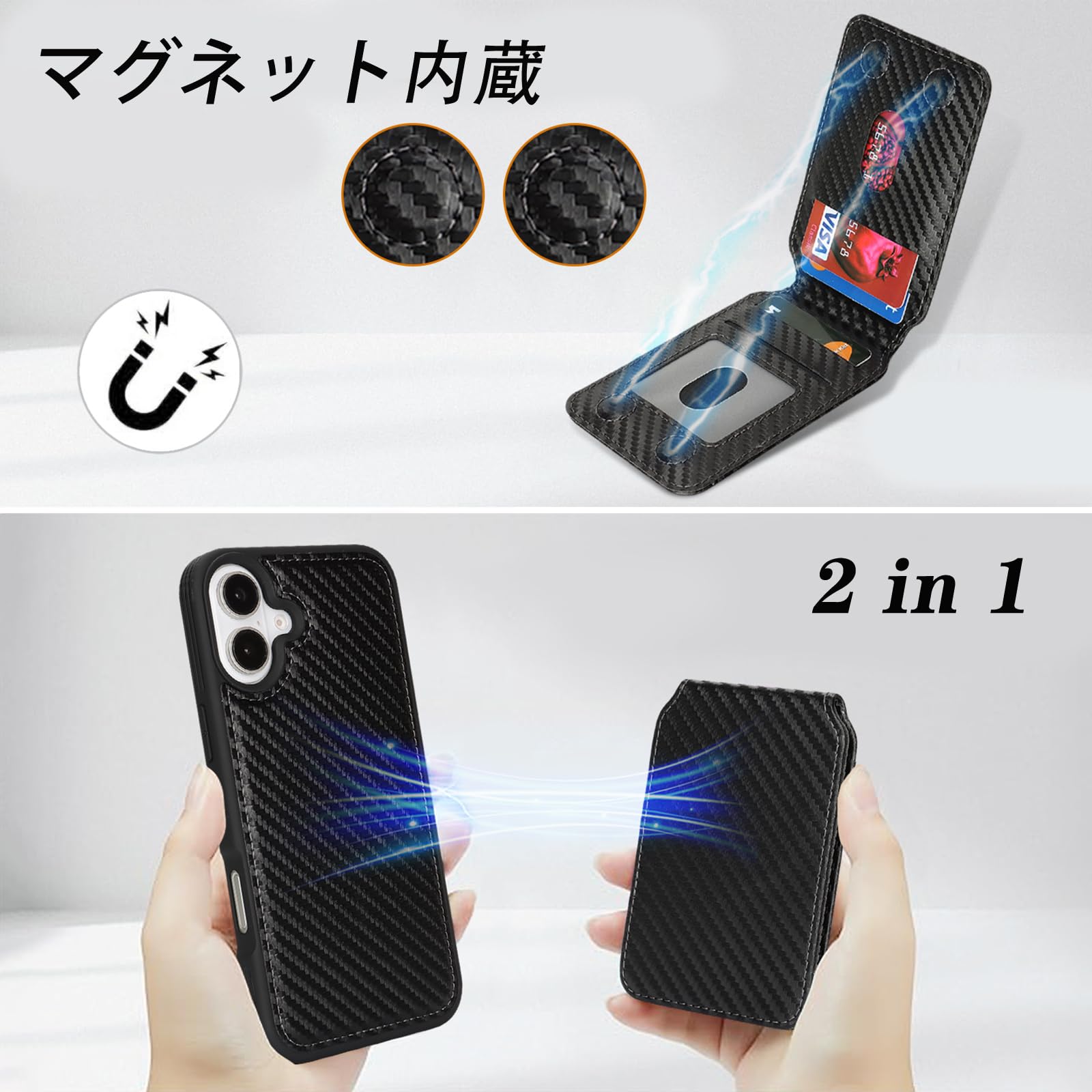 Havaya iPhone 16 ケース MagSafe 対応 あいふおん16ケース マグセーフ カーボン 米軍MIL規格 背面 カード収納 耐衝撃 財布 汗や指紋防止 ハニカム構造 放熱 分離式 ワイヤレス充電対応 高級な炭素繊維風 (6.1インチ対応)-ブラック 炭素繊維