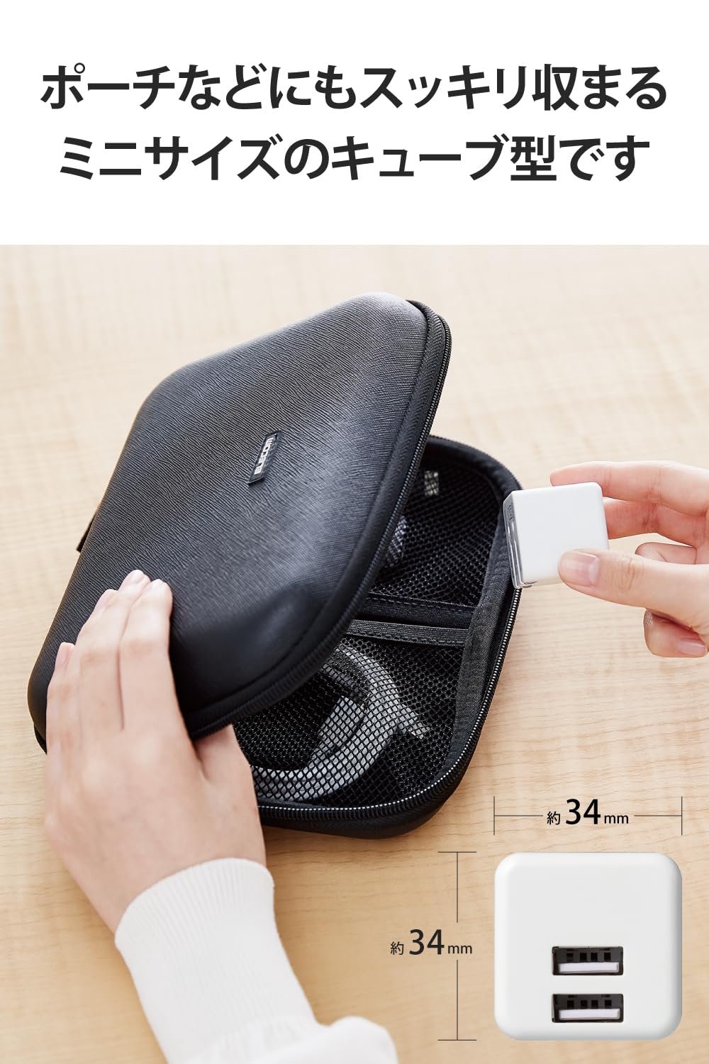 ■外形寸法:幅約34mm×厚み約34mm×高さ約34mm ※ACプラグ収納時