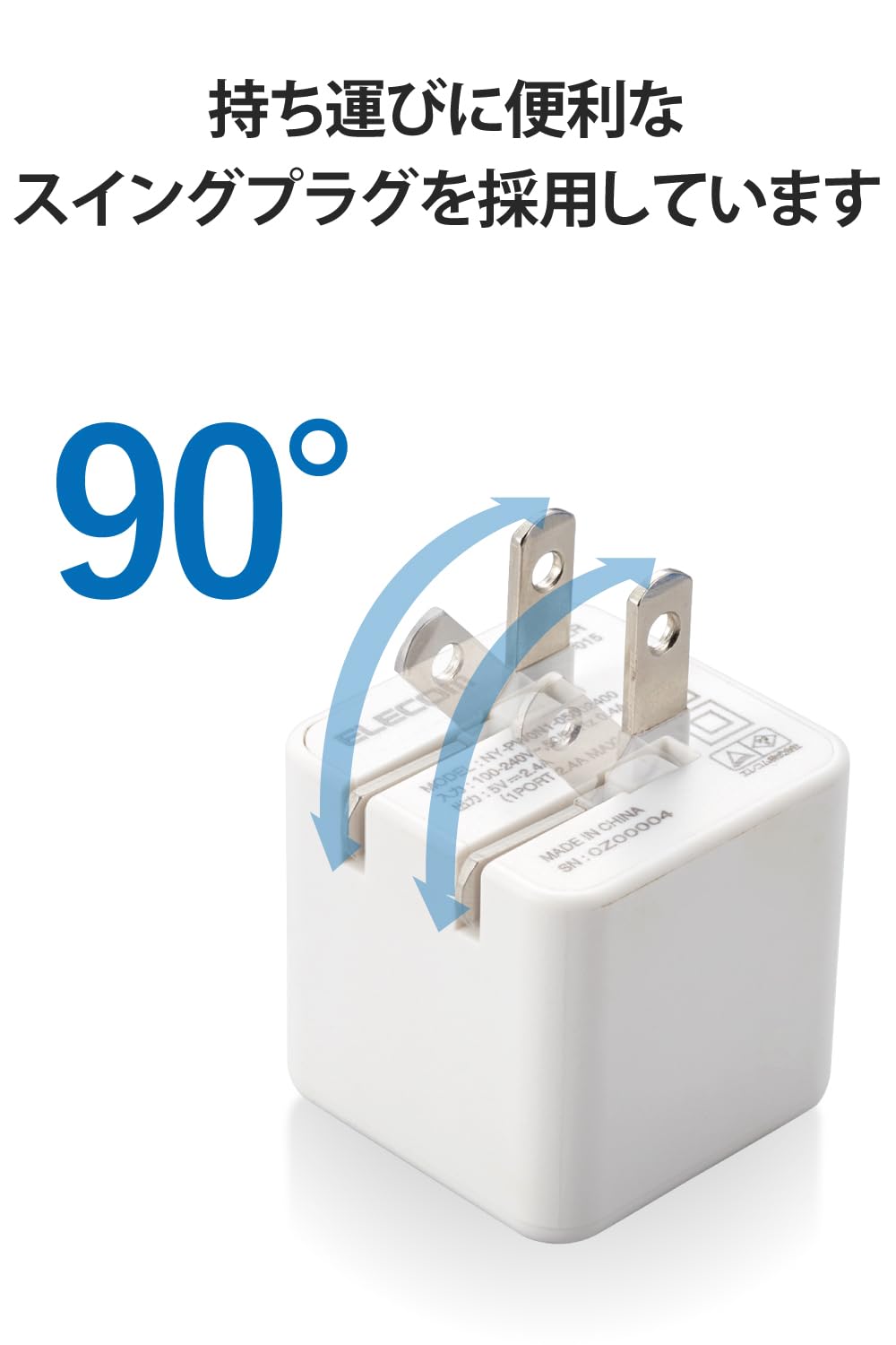 ■未使用時は電源プラグを折りたたんで充電器本体に収納可能です。スッキリとコンパクトに収納できるので、持ち運びにも便利です。