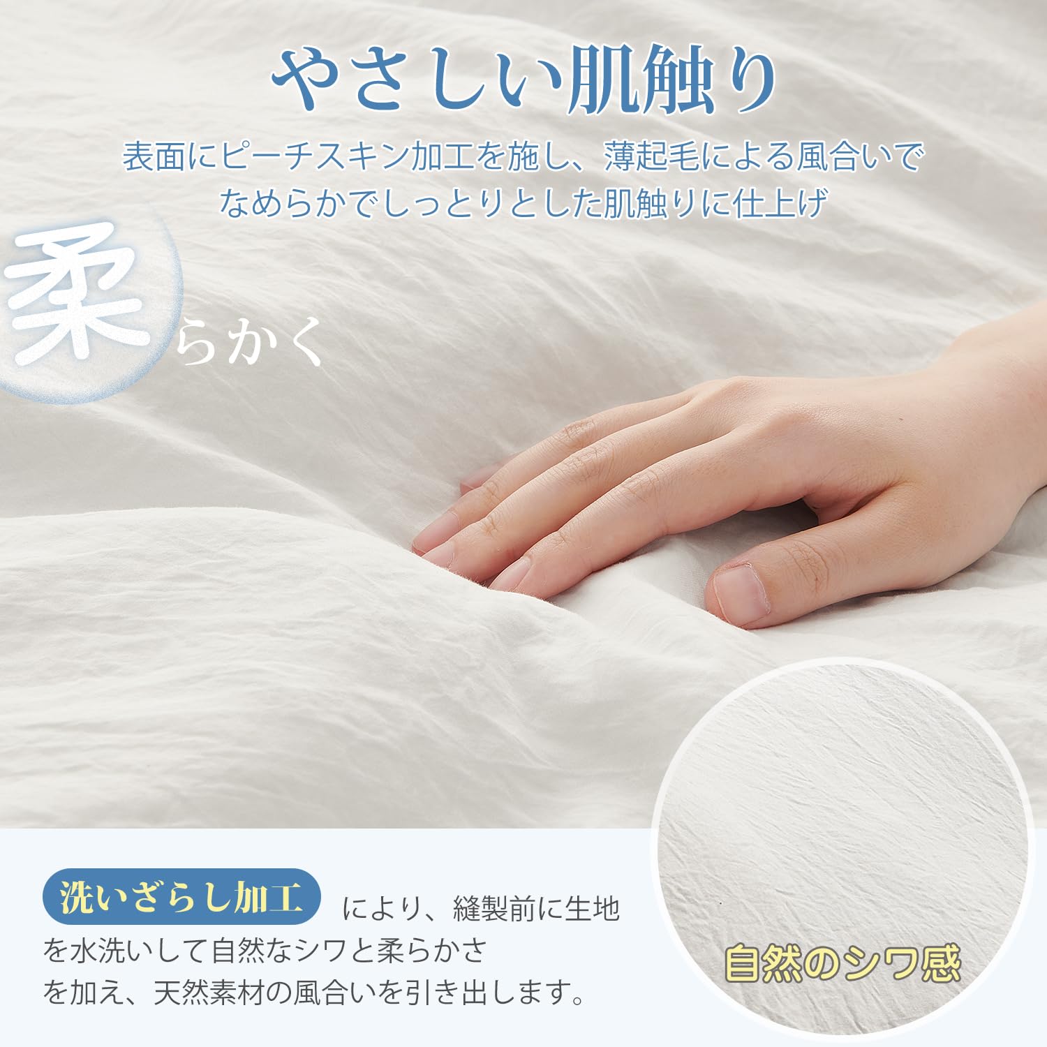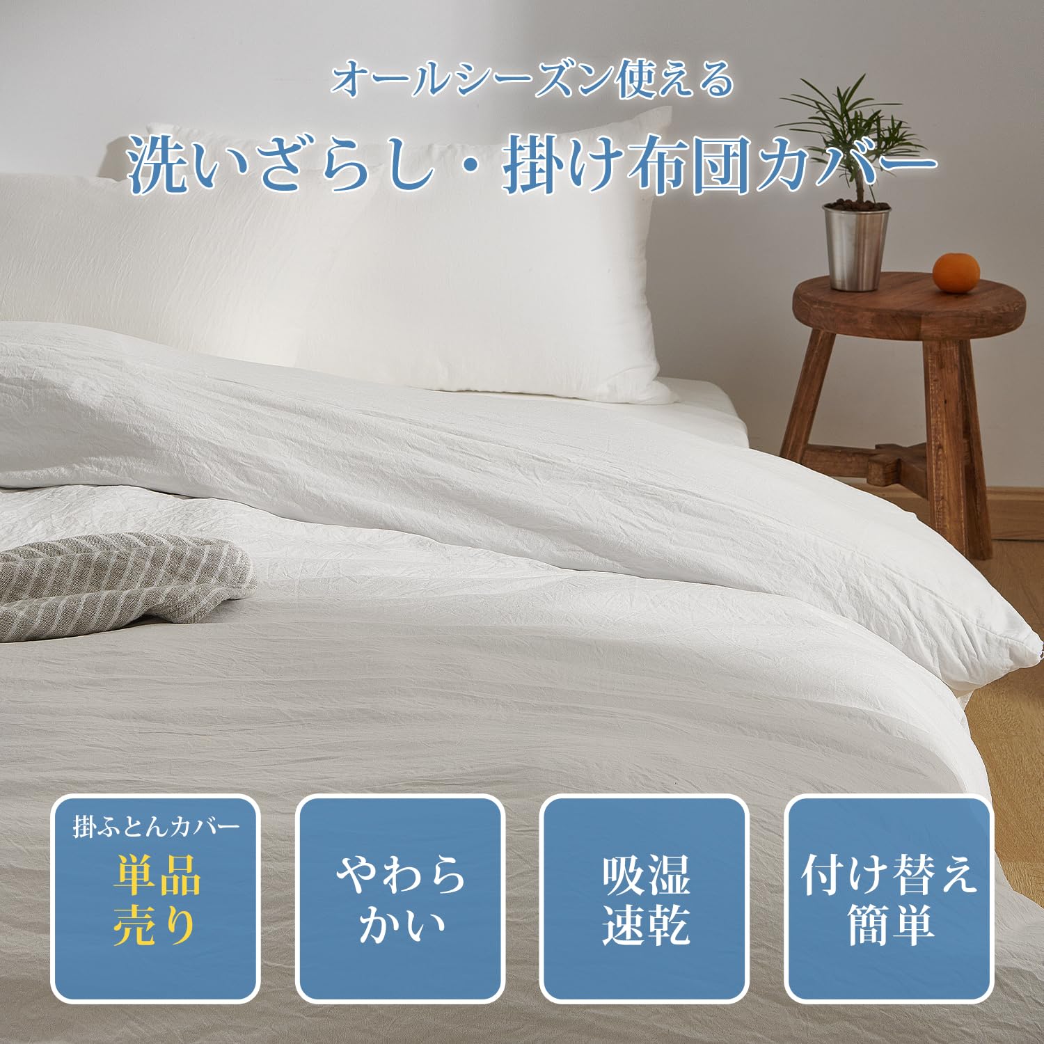 クモリ(Kumori) 掛け布団カバー シングル 洗いざらし 吸湿速乾 素肌にやさしい 柔らかい しっとり ピーチスキン シワ加工 丸洗いOK オールシーズン 布団カバー 掛ふとんカバー (シングル・150X210cm ホワイト)