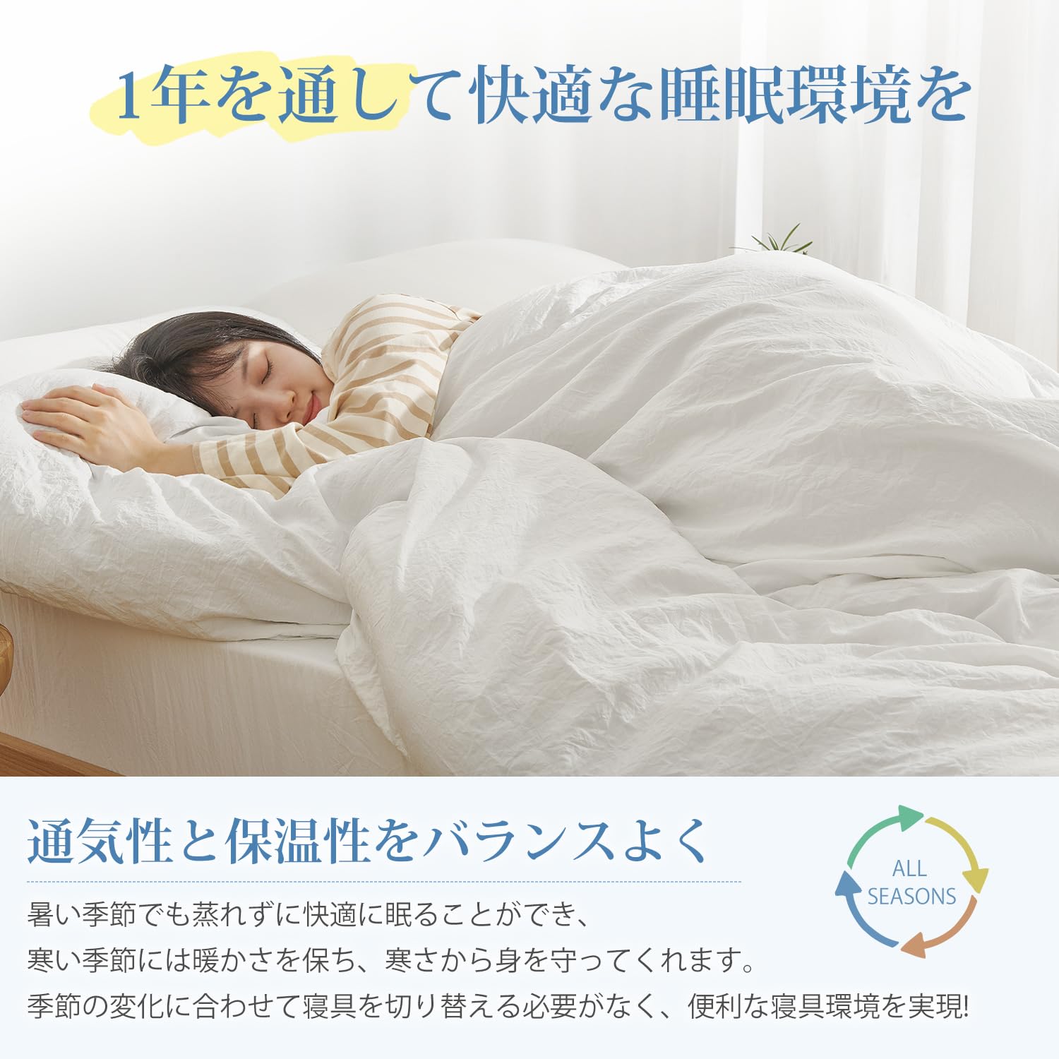 【季節を問わず】優れた吸湿性と通気性で、汗でもベタつかないサラサラ感を保ちます。肌に触れるとしっとりして気持ちよく、毎日快適に眠れて、一年中お使いいただけます。