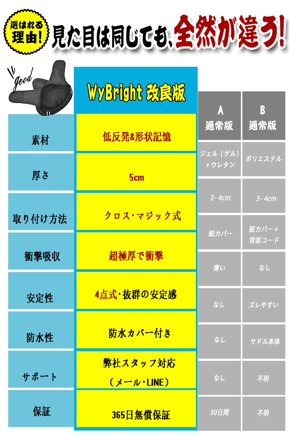 【快適なサドルに変身】硬くて乗り心地が悪い、長時間乗っていられない、古くて破れてしまったサドルでも、交換出来ないサドルでも、お尻が痛くならないサドルに生まれ変わります。高性能素材PVC等、最高品質の強度を実現しながらも、最高のクッション性、軽量性、防水性、断熱性と使い心地にもこだわりました。