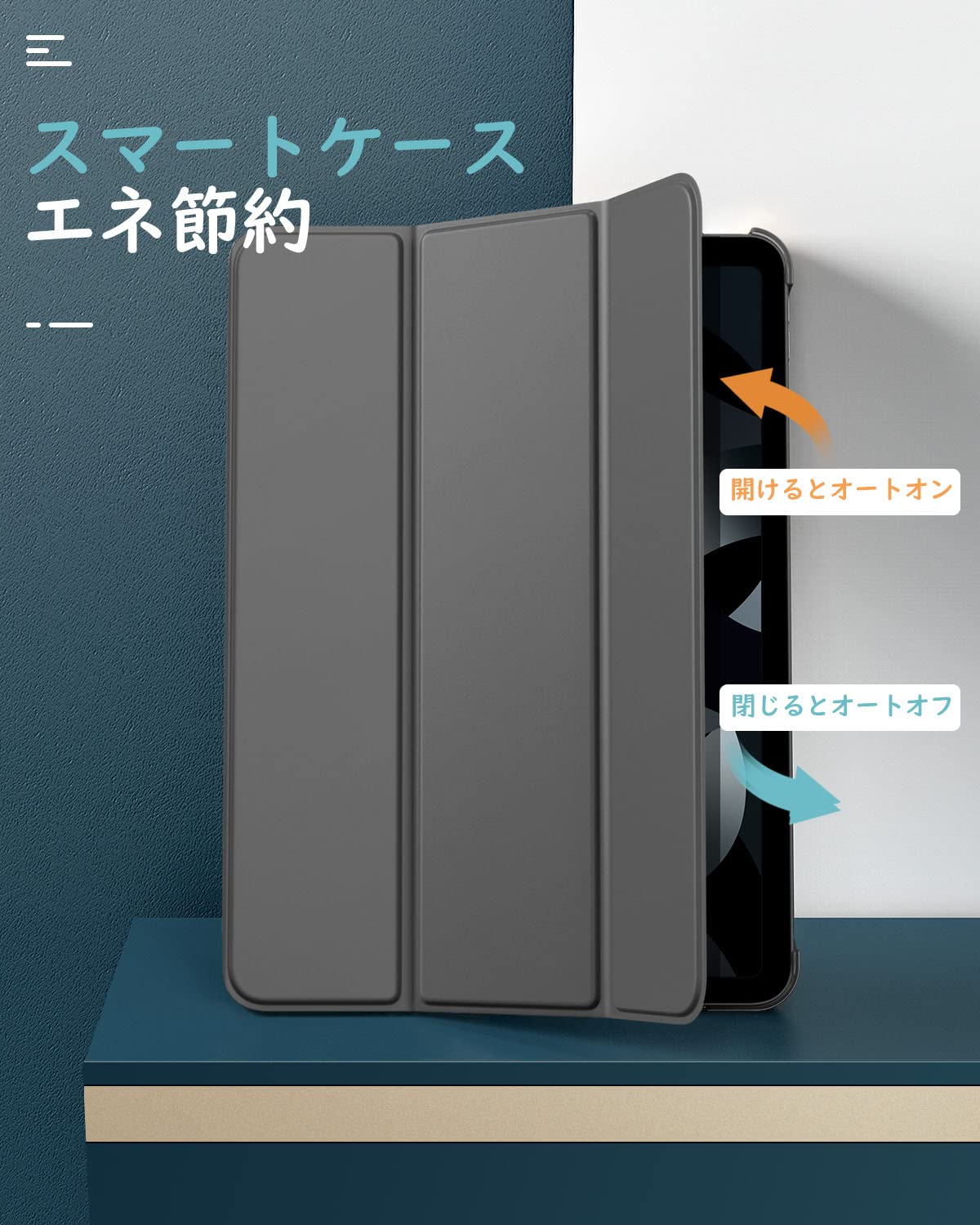 「オートスリープ機能」 オートスリープ機能でカバーを開ける閉めることで電源自動的にオン・オフなります。マグネット内蔵されているためカバンに入れてもカバーが勝手に開けることを心配必要なくしっかり閉められます。