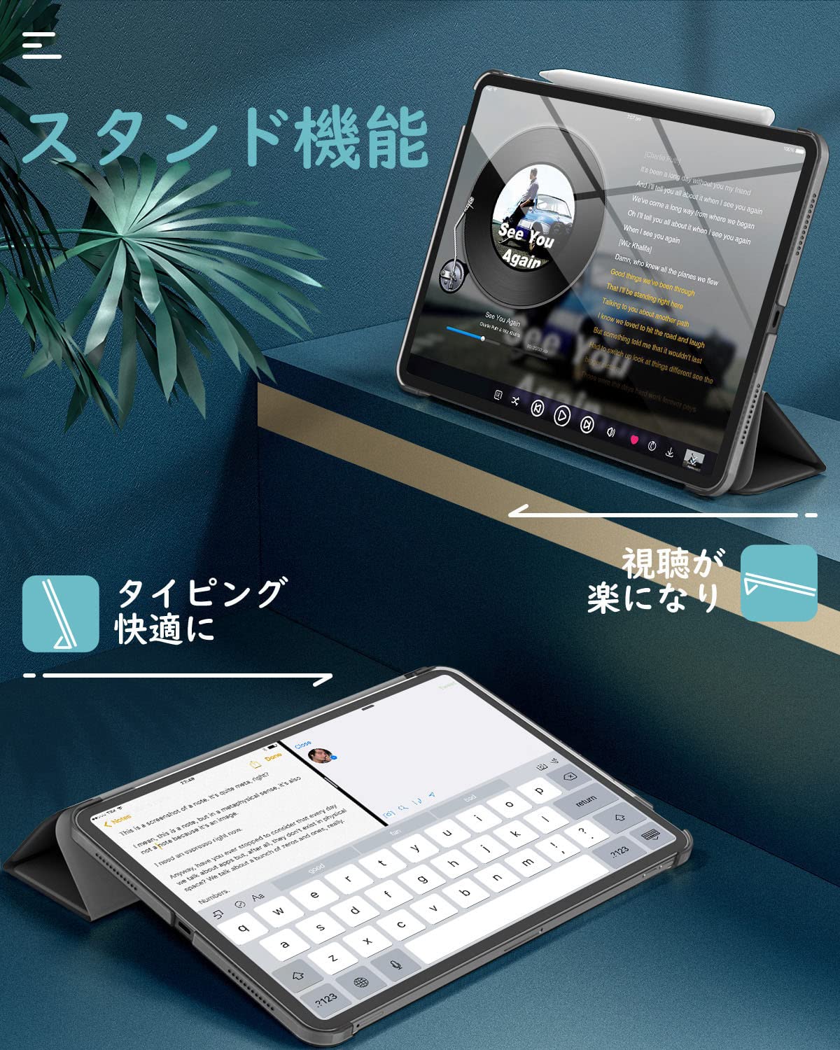 「前蓋PUレザー+背面半透明PC」 ケースの蓋は耐久性に優れた高級PUレザーで仕上げられて、インナーの素材は柔軟なマイクロファイバー製で、端末が摩擦により発生する擦り傷を和らげます。iPadをしっかりと保護できます。背面ケースは半透明PC製で薄型一体式手帳型全保護仕様となっており、優しい手触り感じがして、取付やすくなっています。
