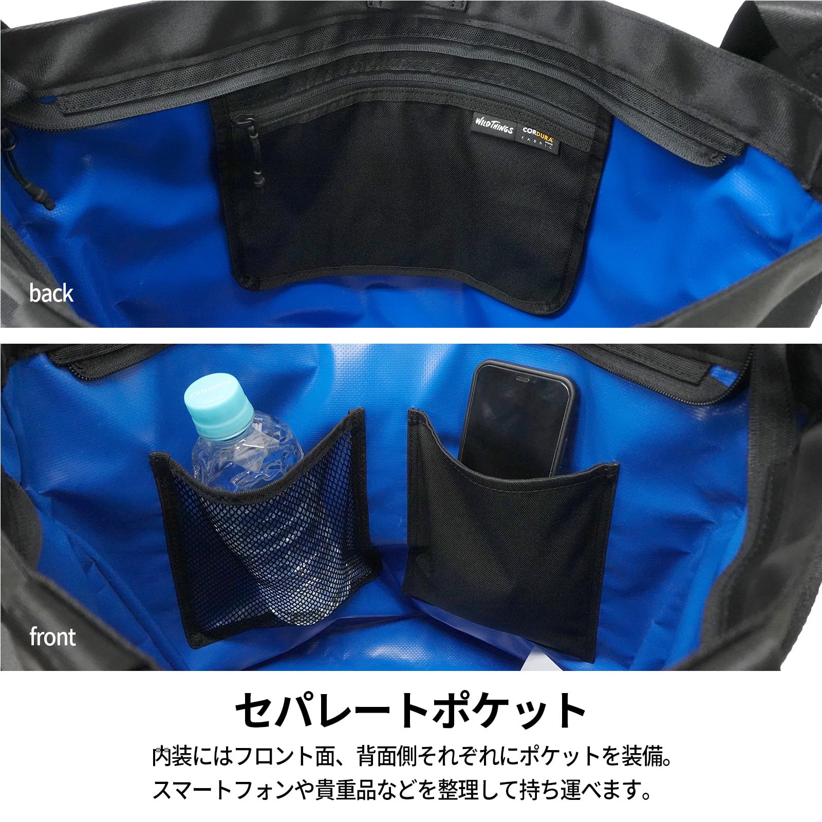 内側:ファスナー式ポケット×1 オープン式ポケット×2