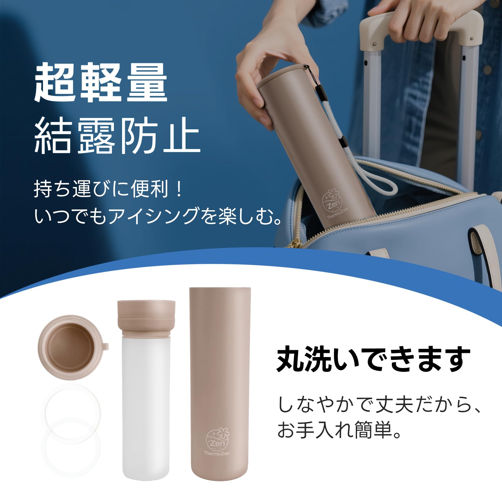 ThermoZen 氷嚢 魔法瓶 氷のう 多機能携帯ミニアイスパック 真空断熱保冷設計 スポーツ 水漏れ防止 応急処置 熱中症予防 繰り返し使用可能なエコアイスパック 弁当保冷に最適 (キャメル)