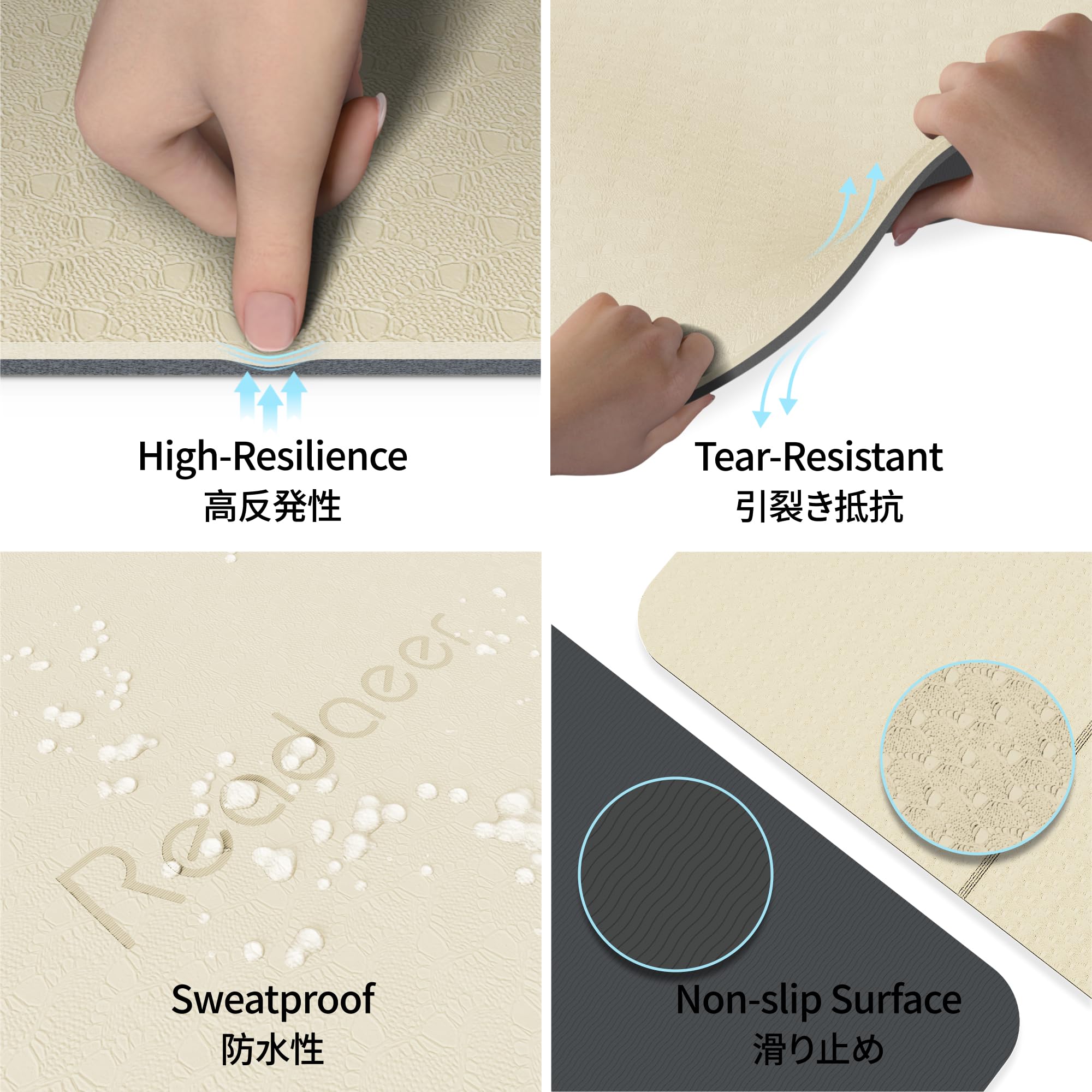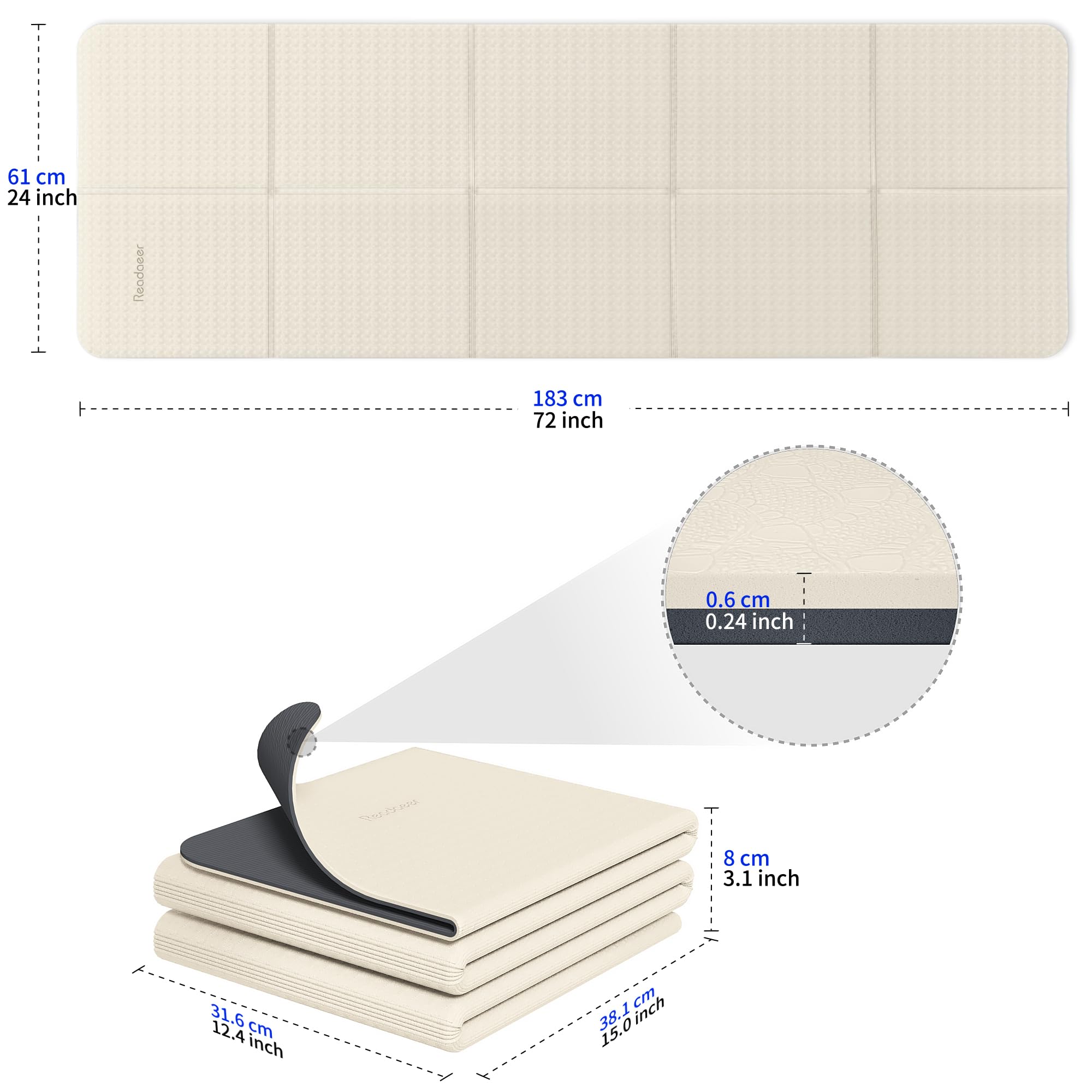 Readaeer ヨガマット トレーニングマット 折り畳み式 183cm×61cm 厚め 6mm TPE素材 無臭 防音 収納バッグ付き 軽量 持ち運び・収納便利 ストレッチマット エクササイズマット フィットネスマット ピラティスマット