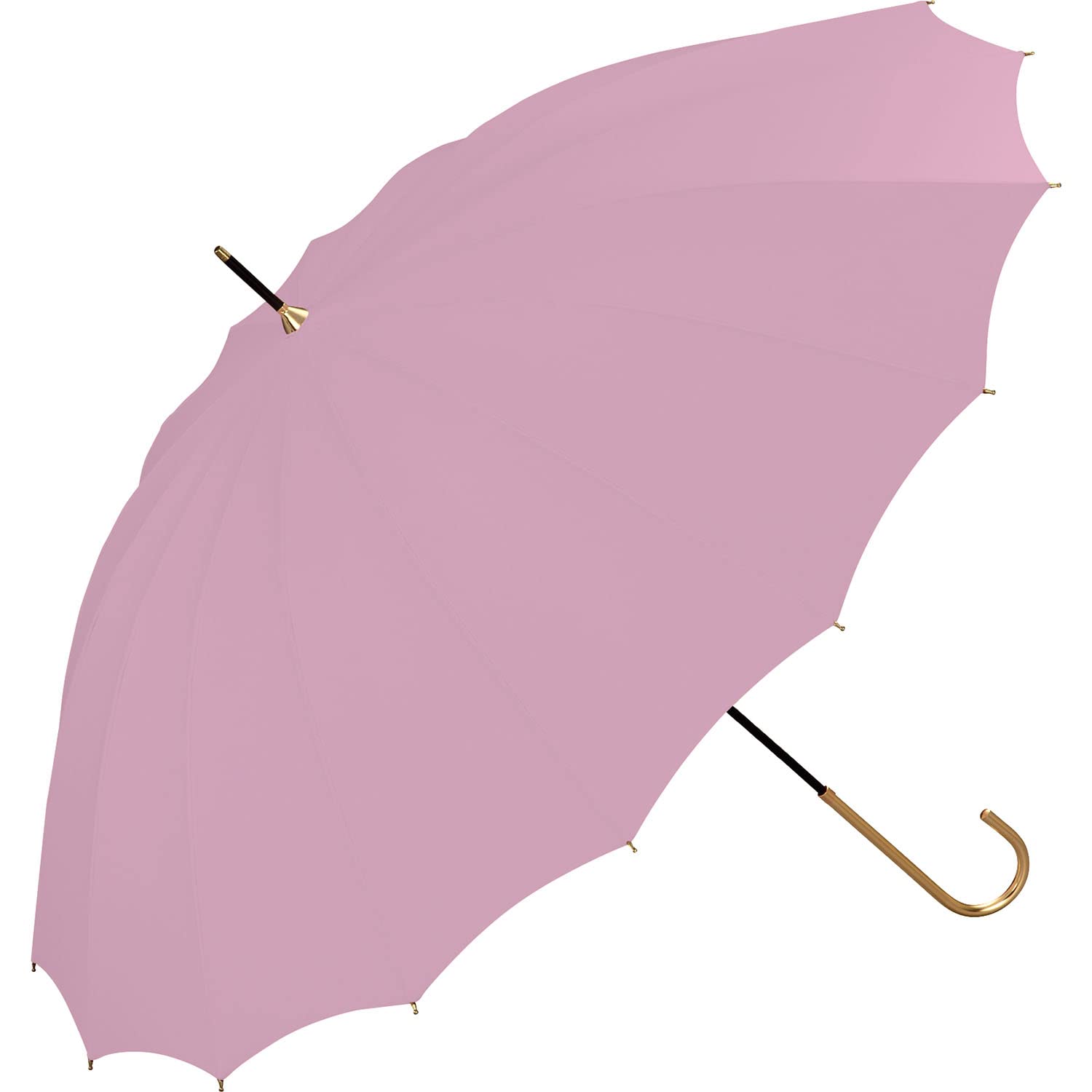 Wpc. 雨傘 長傘 16本骨ソリッド ピンク 晴雨兼用 UVカット 紫外線防止 親骨55cm 大きい レディース 多骨 丈夫 おしゃれ 可愛い 上品 フェミニン シンプル パステル お呼ばれ 通勤 通学 女性 8774-04-001