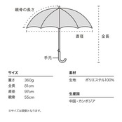 【晴れの日も使える雨傘(晴雨兼用)】 この製品は雨傘としてお使い頂くことを主としていますが、紫外線防止効果があります。 但し、色の濃淡によって紫外線遮蔽率(UVカット率)が異なります。次の数値を目安としてご参照ください。 淡色:約80%、濃色:約90%