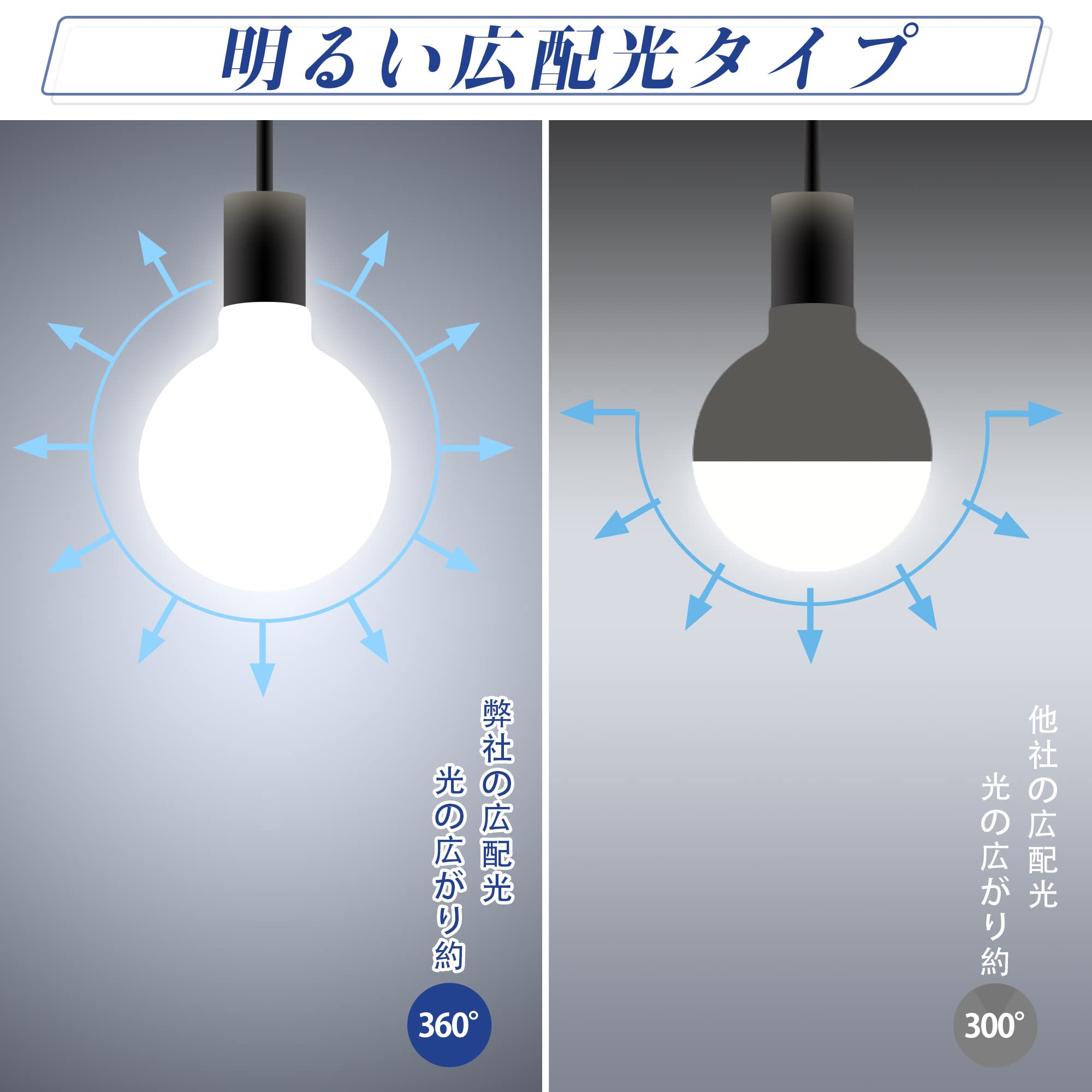 〖広配光タイプ〗:約360°の明るさ広がる広配光設計。リビング、ダイニング、キッチン、洗面所、トイレ、脱衣室などの照明にとても適しています。