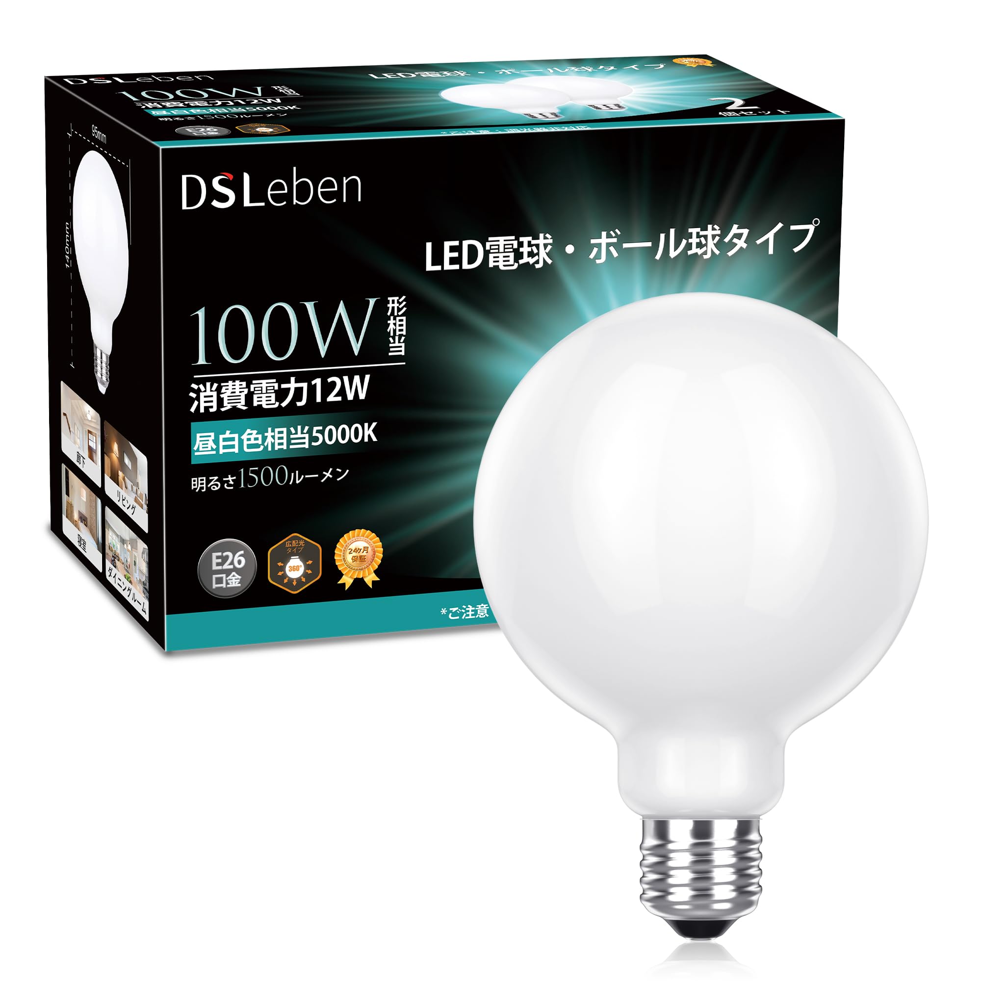 〖PSE認証〗:DSLeben G95 LED電球はPSEマーク取得しておりますので、製品の品質と安全はされています。本製品は購入日から2年の期間があります。取付簡単、ダウンライト、天井埋め込みライト、ペンダント、卓上ランプなどの照明器具に使用できます。