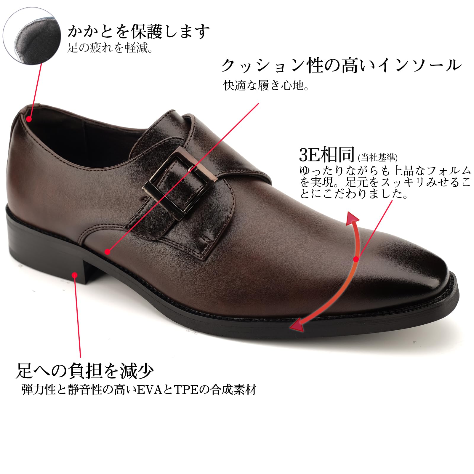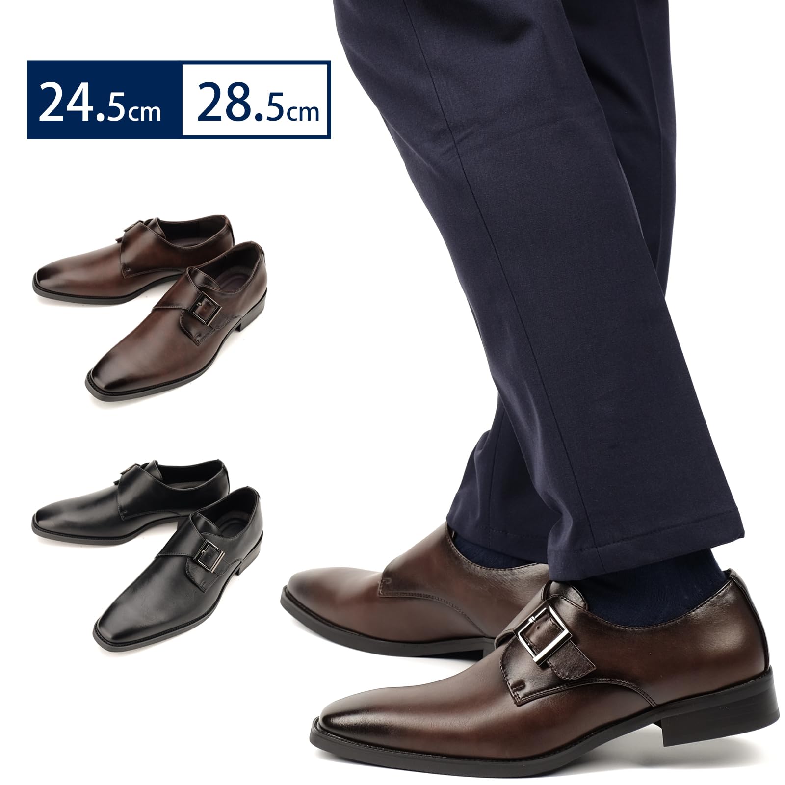 [KIXSTAR] ビジネスシューズ 革靴 メンズ ドレスシューズ プレーントゥ 紳士靴 モンクストラップ