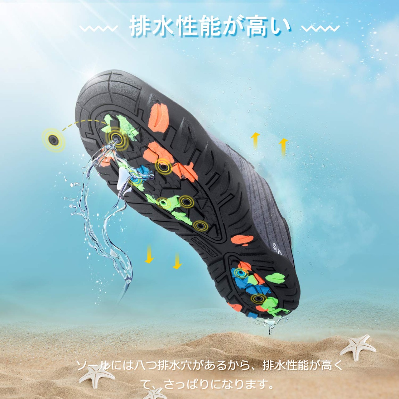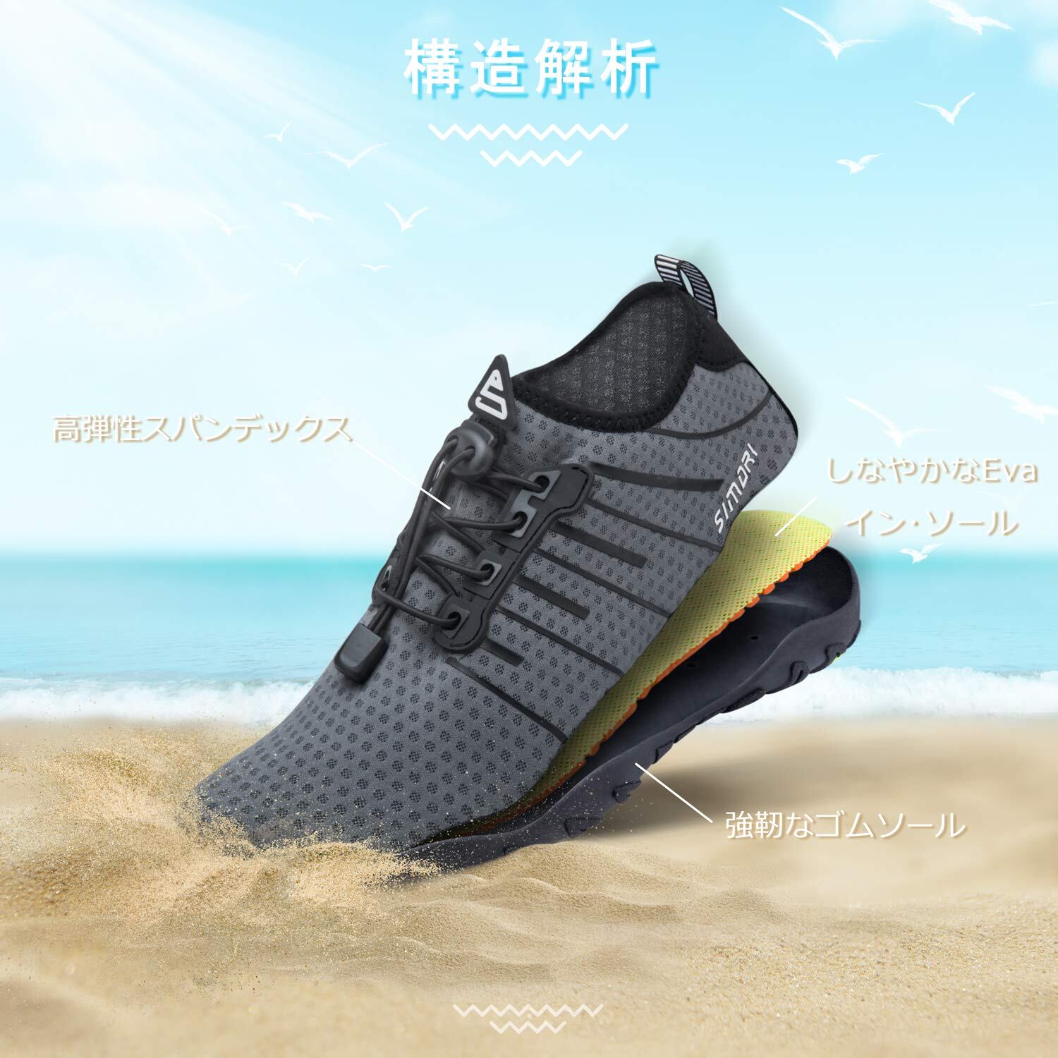 [SIMARI] マリンシューズ ウォーターシューズ アクアシューズ 通気 速乾 軽量 滑り止め 折りたたみ可能 水陸両用 男女兼用 室内履き 釣り 海 川 プールメンズ レディース