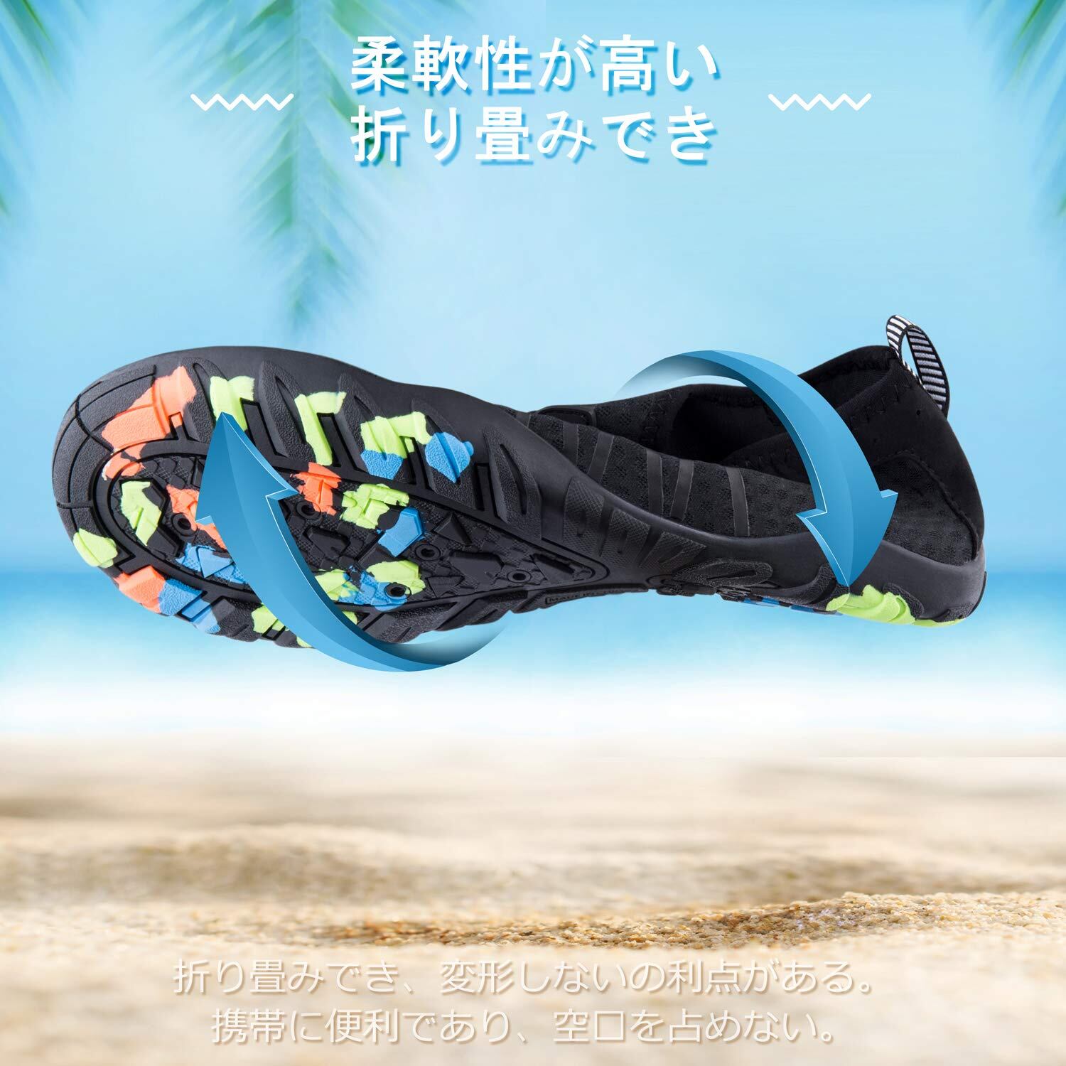 【軽量柔軟】軽量化素材を採用したため、足に負担をかけず、ストレスフリーな履き心地を楽しめます。いい柔軟性で、屈曲性に優れ、歩きやすく、素足みたいな履き心地を持っています。また、折り畳みも可能で、スペースを取らず、かばんに入れられ、持ち運び便利です。