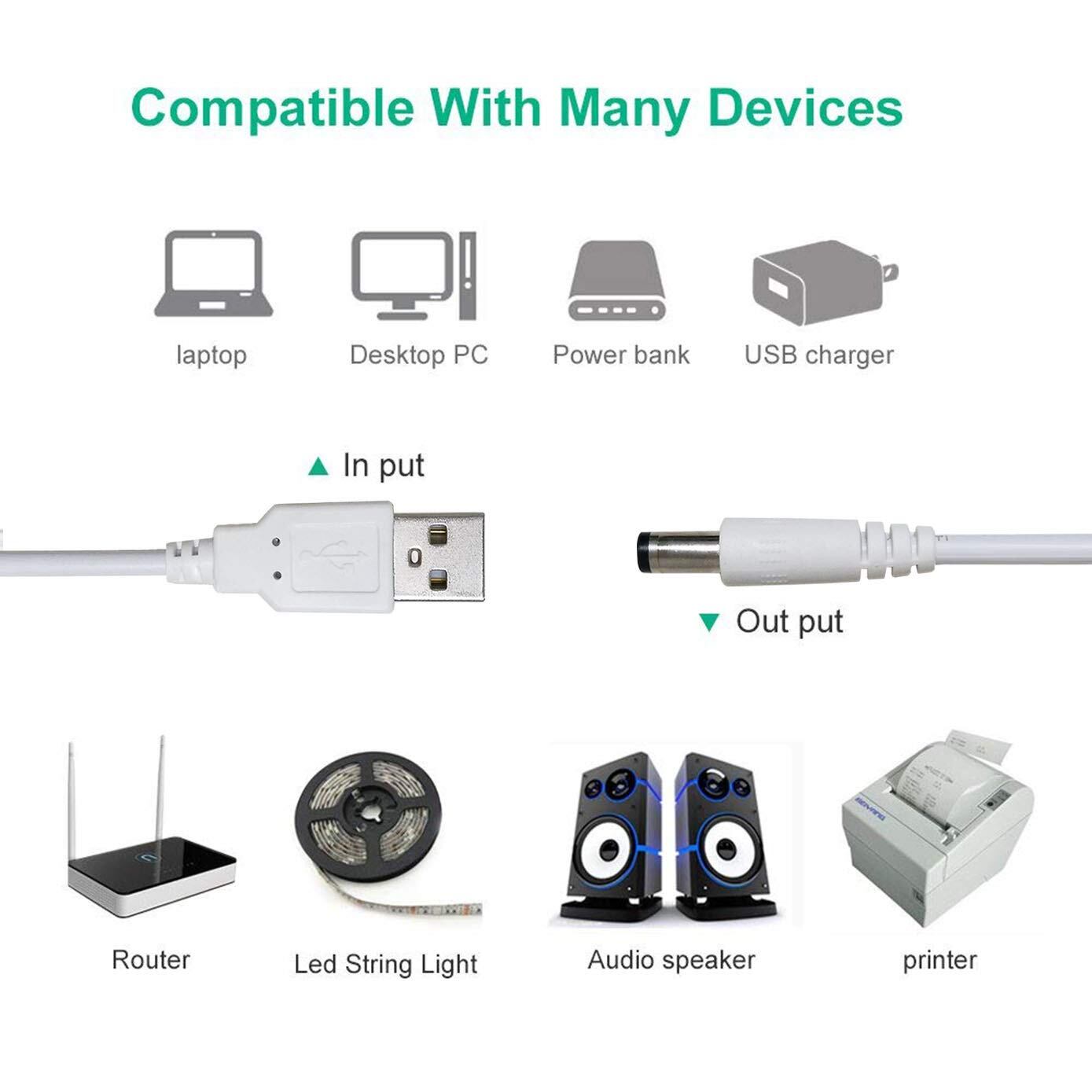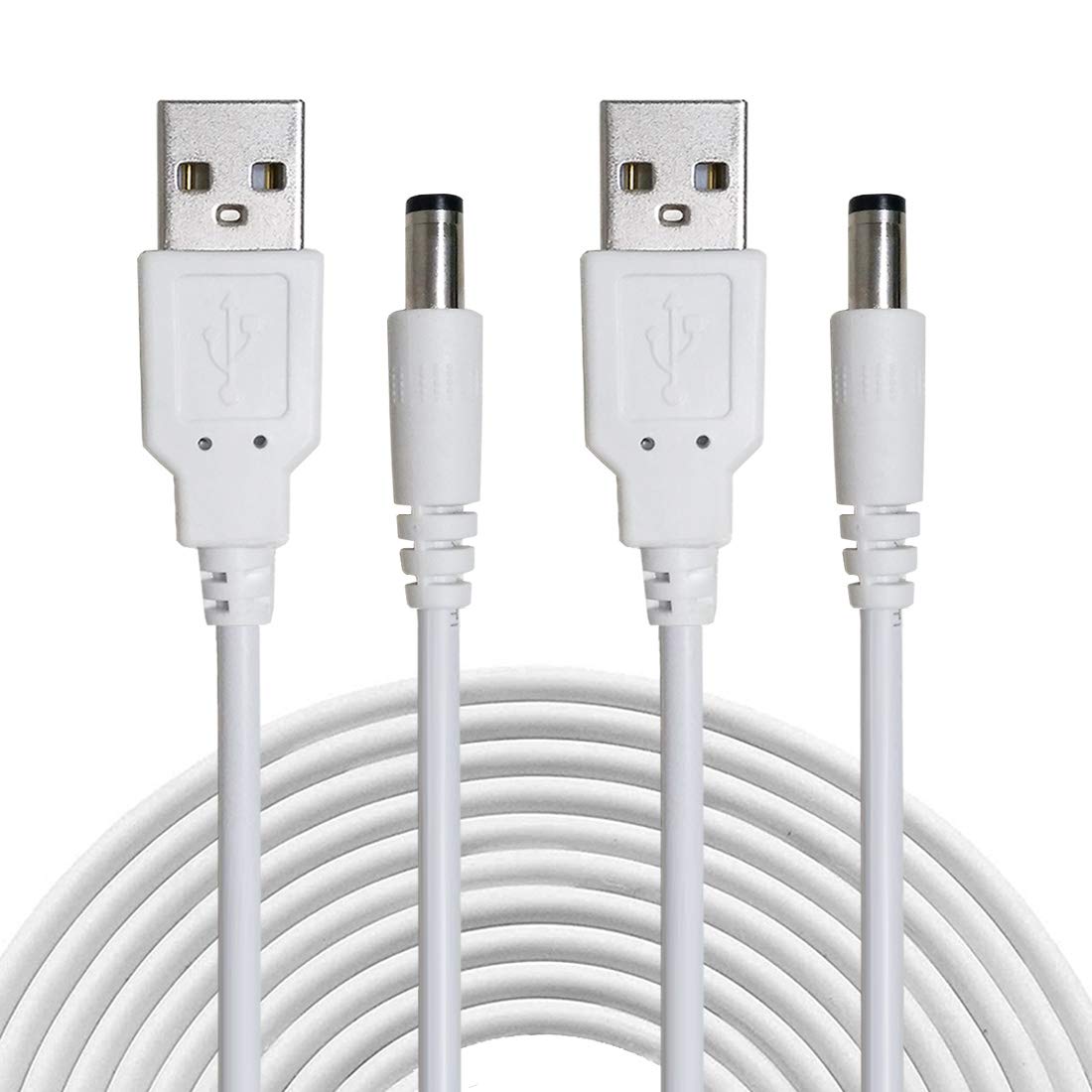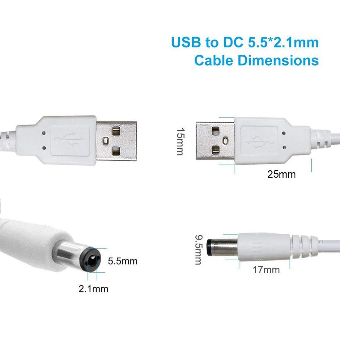 Liwinting 2本1m USB to DC電源ケーブル、5V USB DCケーブル、5.5 mm x 2.1 mm DCバレルオスジャックコンバータ電源接続ケーブル - 白