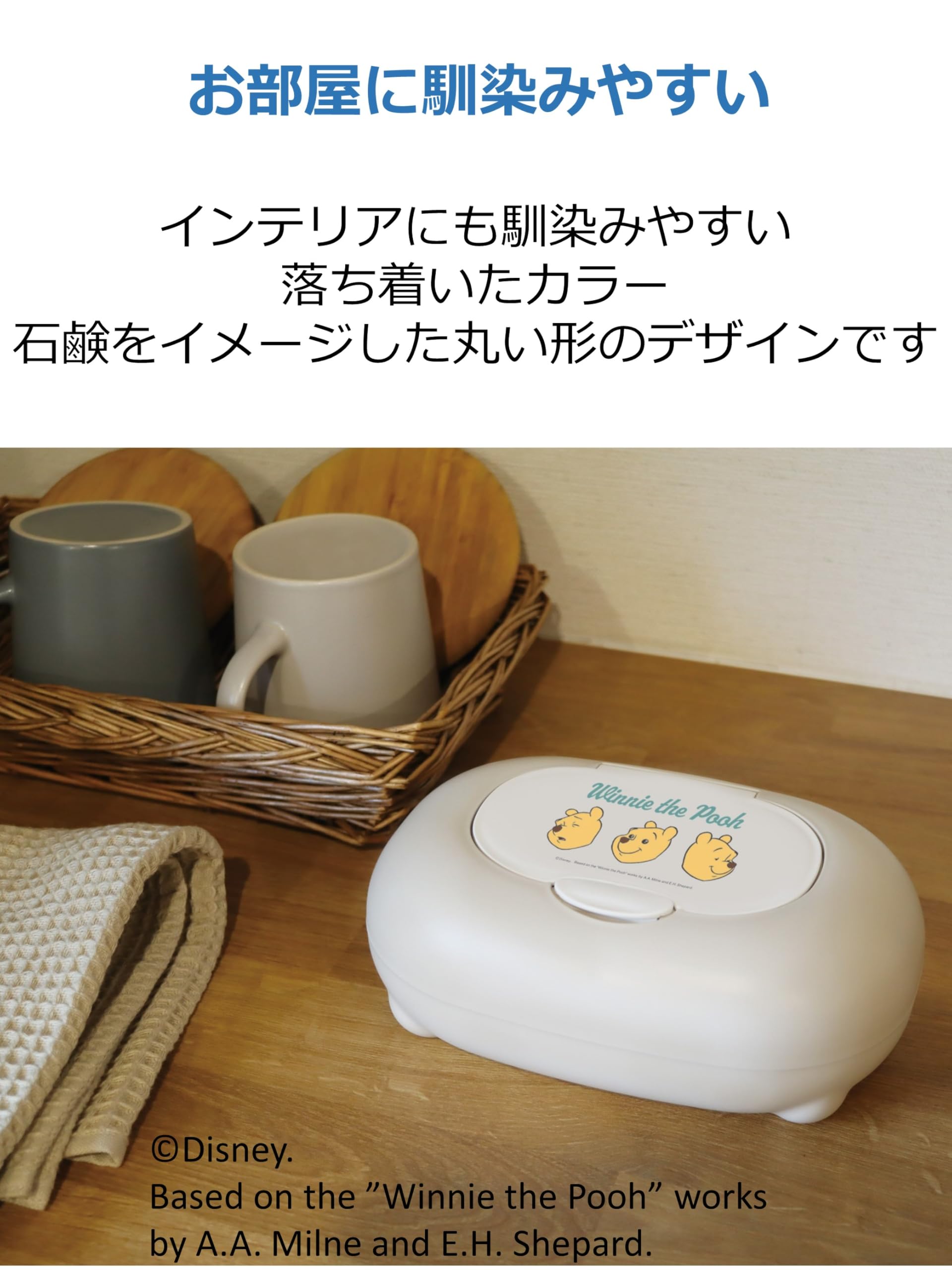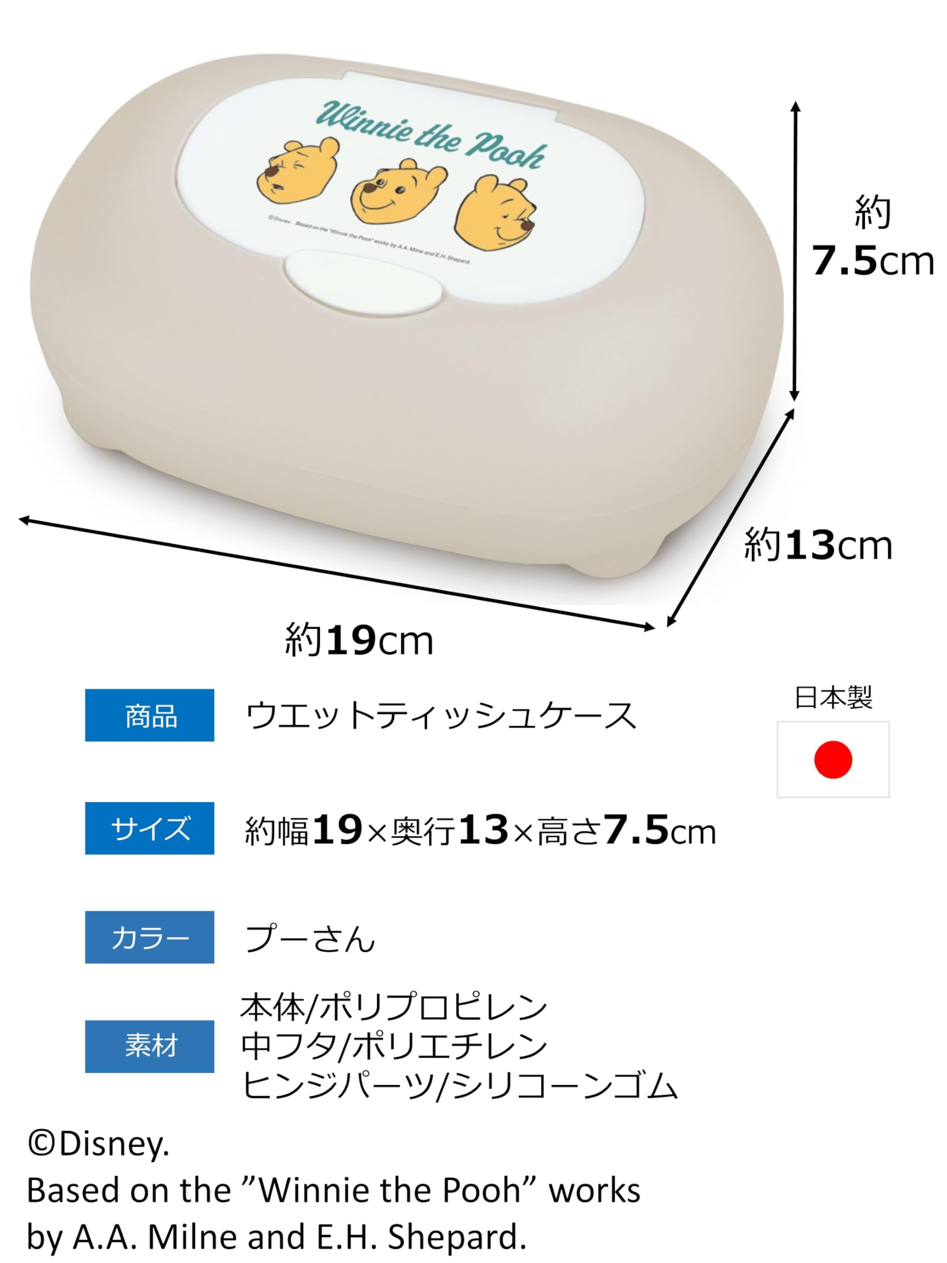 【数量限定】錦化成 ウェットティッシュ おしりふき ケース プーさん アイボリー 約19×13×7.5cm 日本製 ワンプッシュオープン式