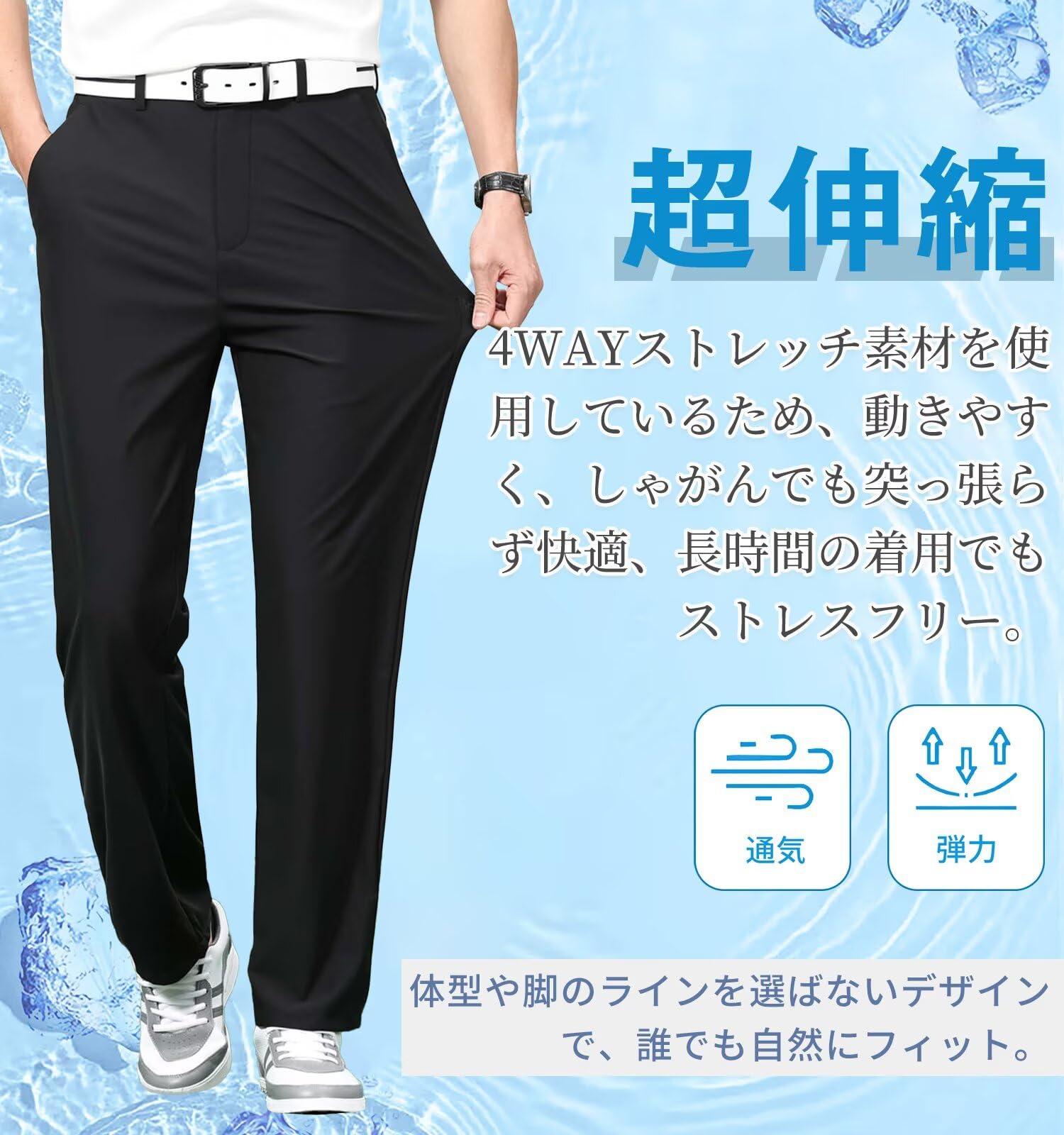 [Kayiyasu] ゴルフパンツ メンズ 接触冷感 超伸縮 UVカット スラックス アイスシルク ストレッチ 通気 ビジカジ カジュアル ビジネスパンツ 春 夏 軽量