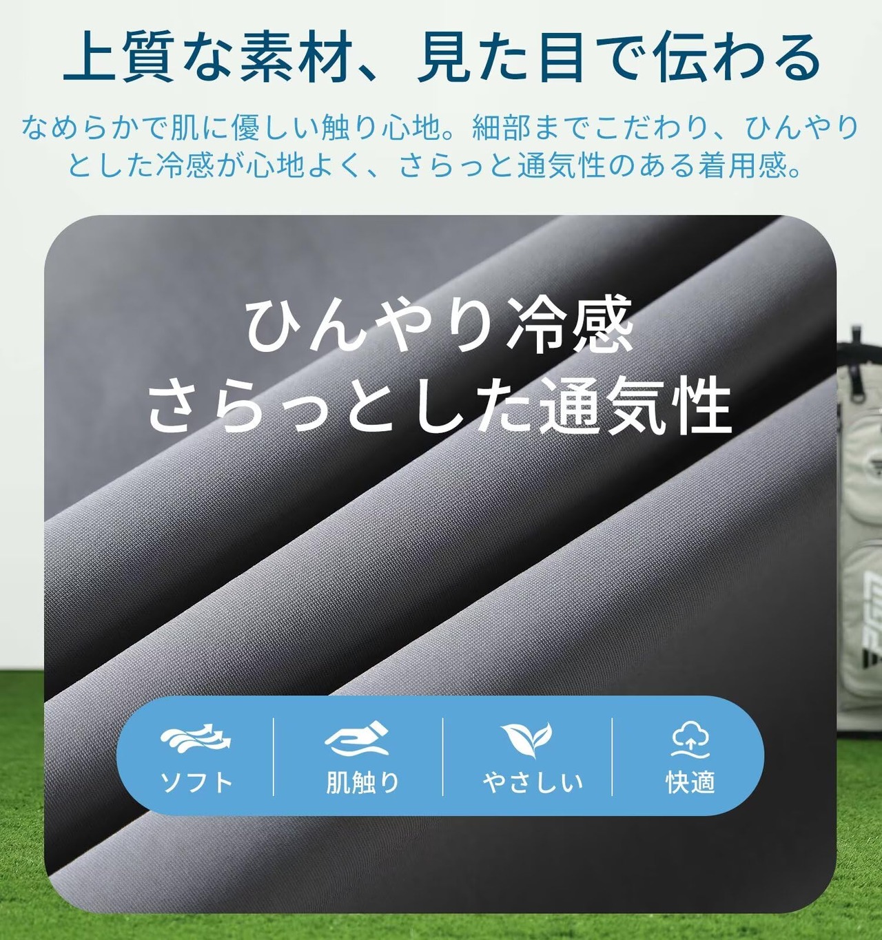 【接触冷感×UVカット】このロングパンツは着た瞬間ひんやりとした冷感が広がる特殊素材を採用。真夏の強い日差しの中でも、UPF50+の優れたUVカット機能でしっかり紫外線をブロック。通気性にも優れており、汗ばむ季節でもムレにくく、爽やかな履き心地をキープします。