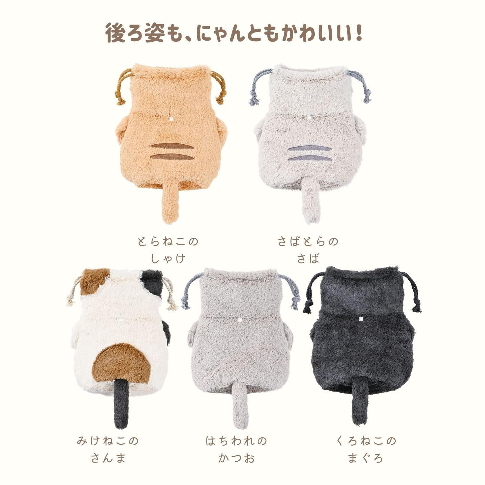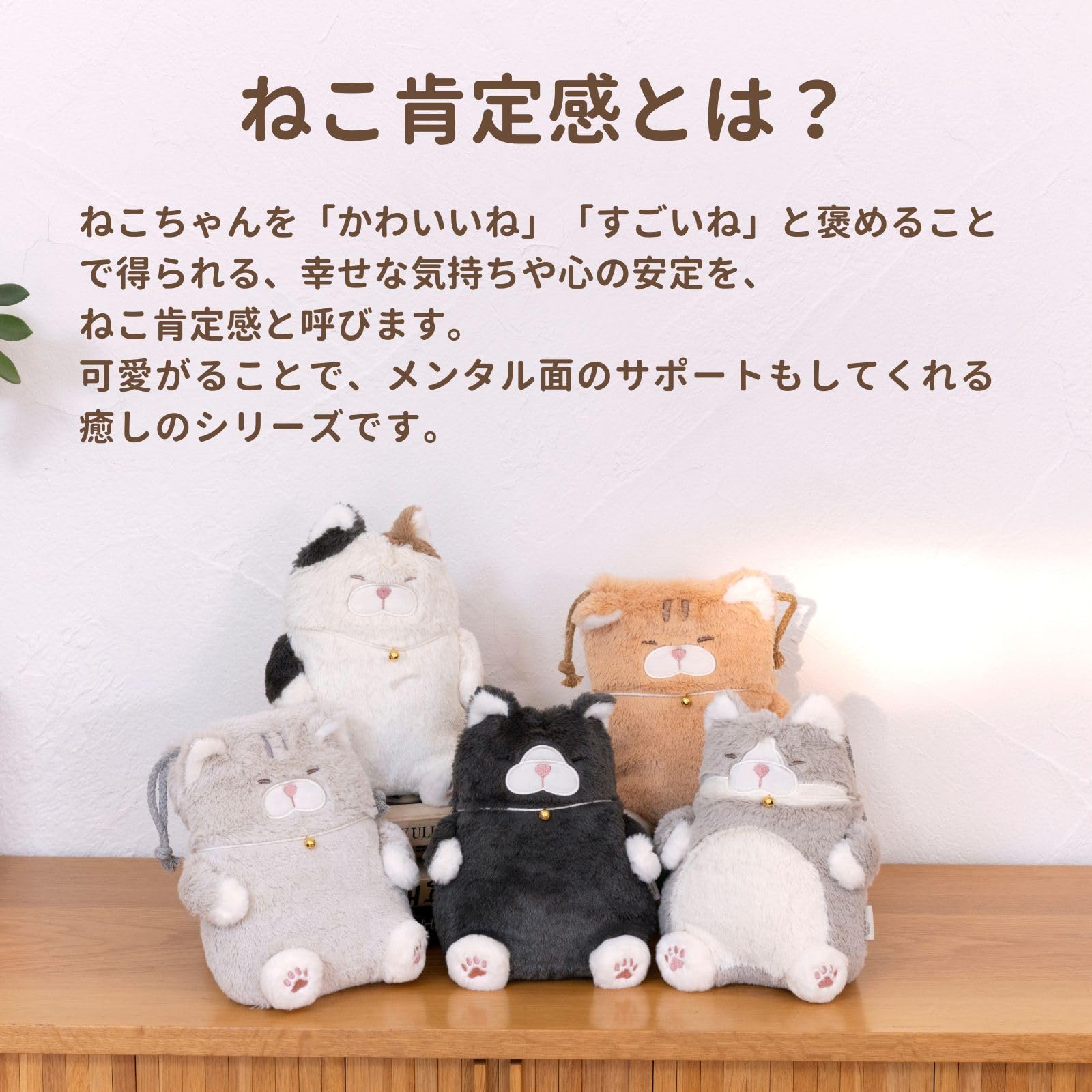 りぶはあと 巾着 ねこ肯定感 (全長約20cm) ねこ ふわふわ 小物入れ 立体巾着 37723