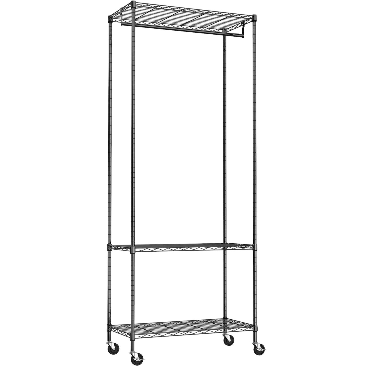 【在庫セール】IZEUK ハンガーラック キャスター付き 2段 ハンガーパイプ1本 洋服ラックポール 収納 棚 服掛け 防錆 頑丈 幅75×奥行40×高さ189.3cm ポール径19.1mm パイプハンガー コート掛け おしゃれ アジャスター付属 侧面2個コート掛けフック付き ブラック | nico3588