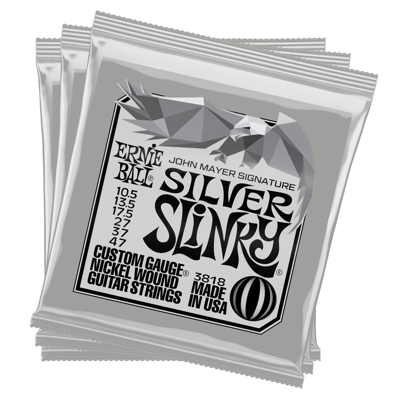 ERNIE BALL アーニーボール エレキギター弦 SILVER SLINKY 3818 シルバー・スリンキー (10.5-47)/John Mayer Signature 3Set Pack